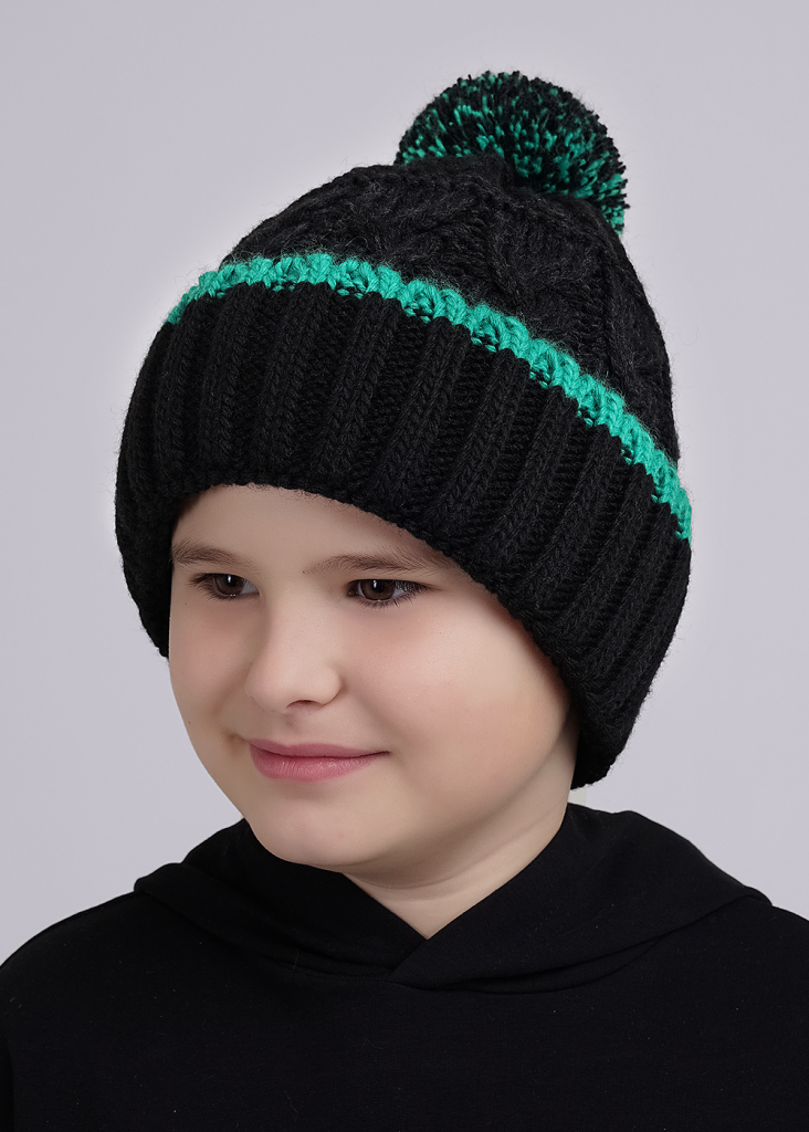 CLE Шапка дет. 444132ап флис, чёрный/зелёный