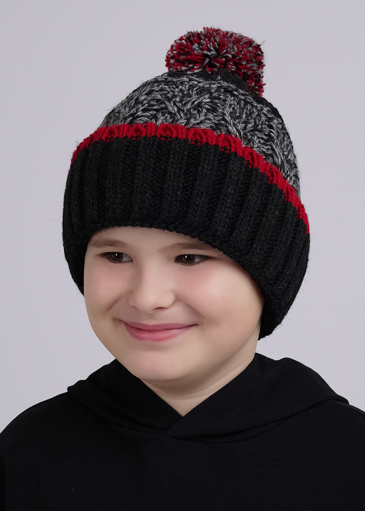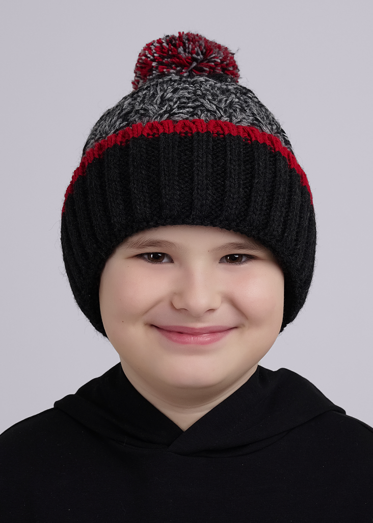 CLE Шапка дет. 444132ап флис, меланж т.серый/красный