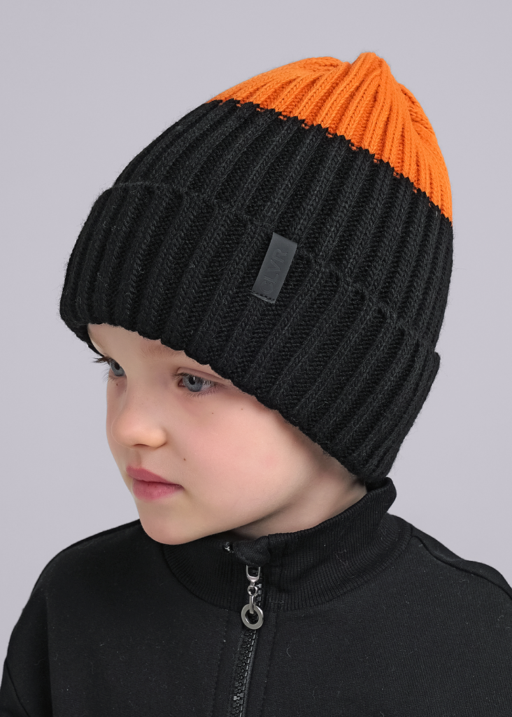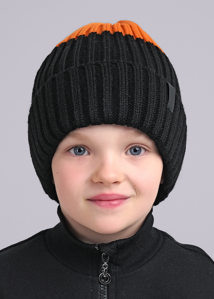 CLE Шапка дет. 444143ап флис, чёрный/оранжевый