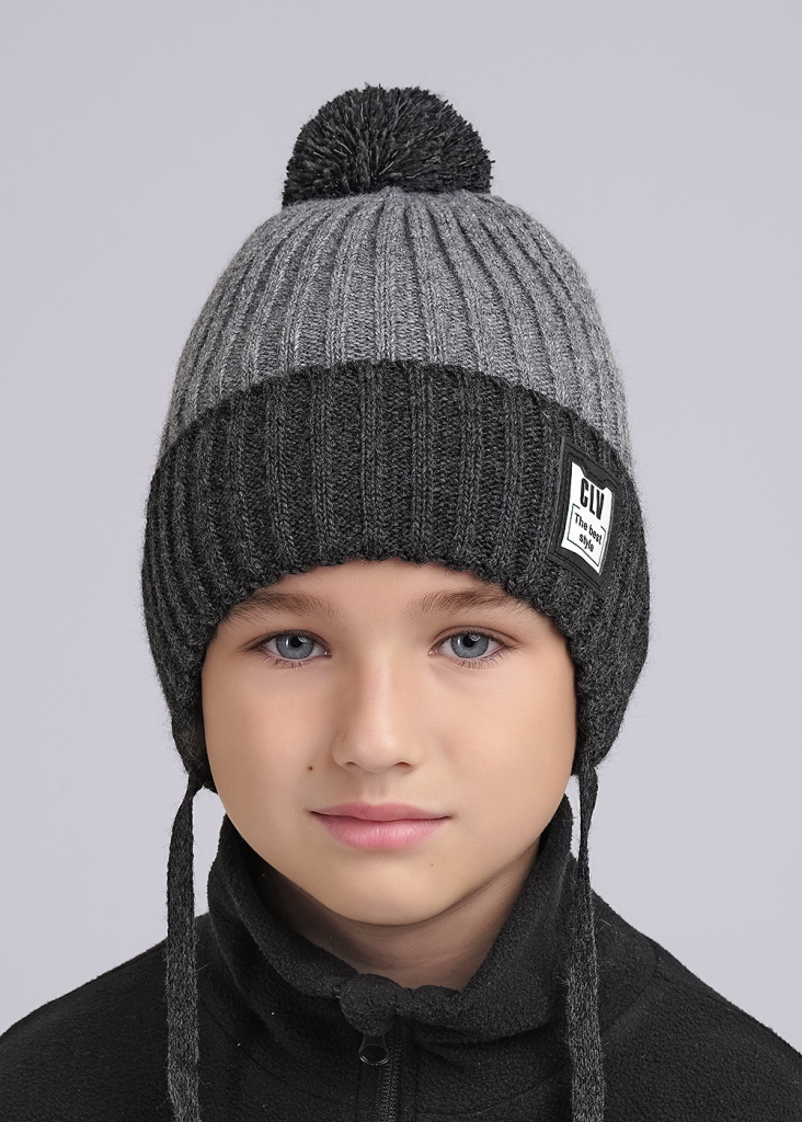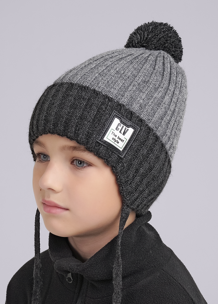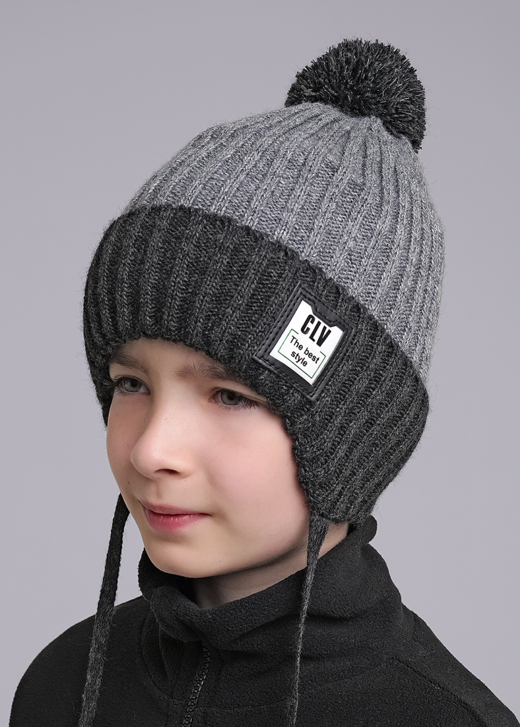 CLE Шапка дет. 444214ап флис, меланж т.серый/меланж серый