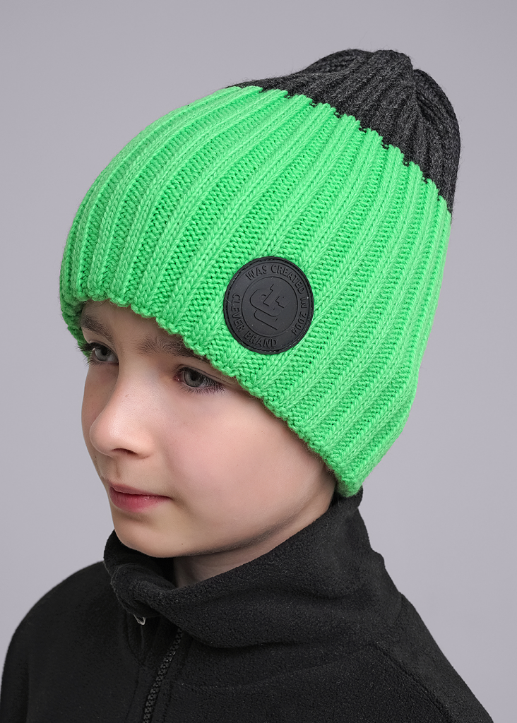 CLE Шапка дет. 444215ап, зелёный/меланж т.серый