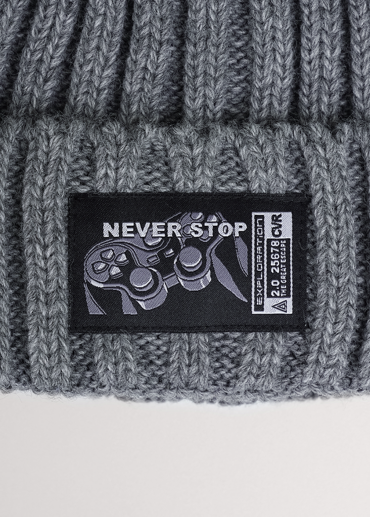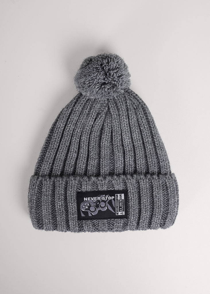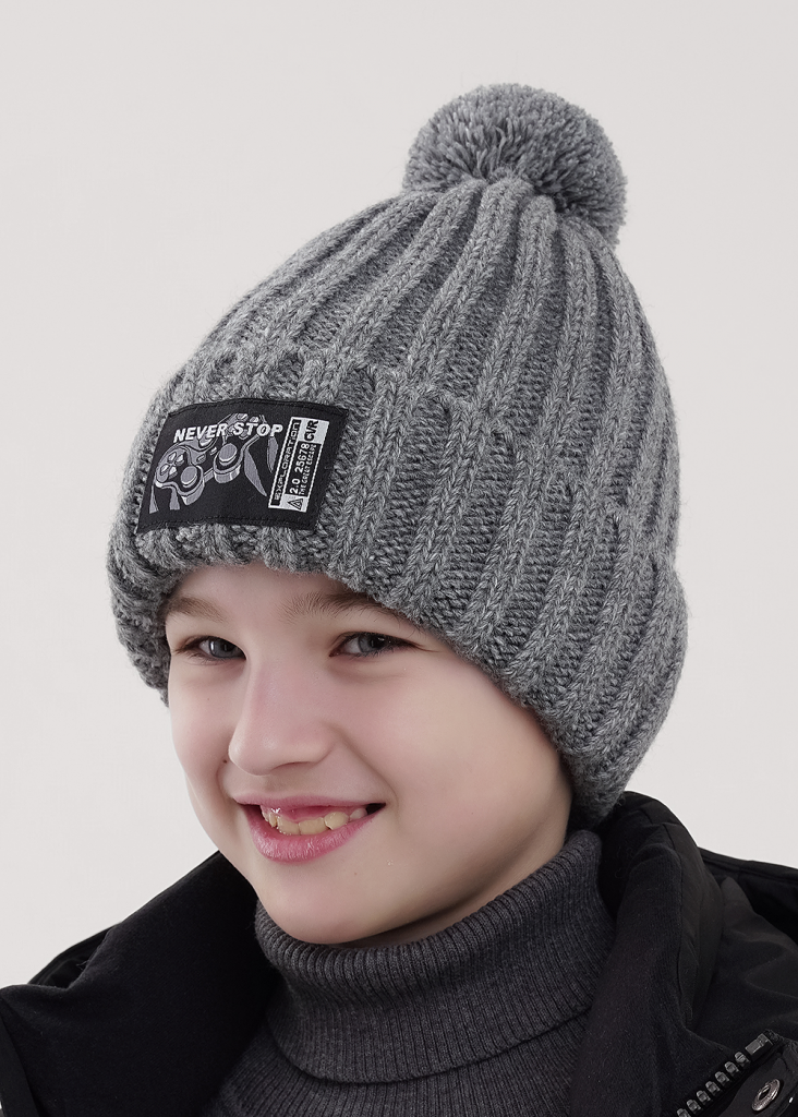 Детская шапка с отворотом и ниточным помпоном. Декорирован стильной нашивкой, утепление флисом по всей голове.Отлично подойдёт для холодной зимы.