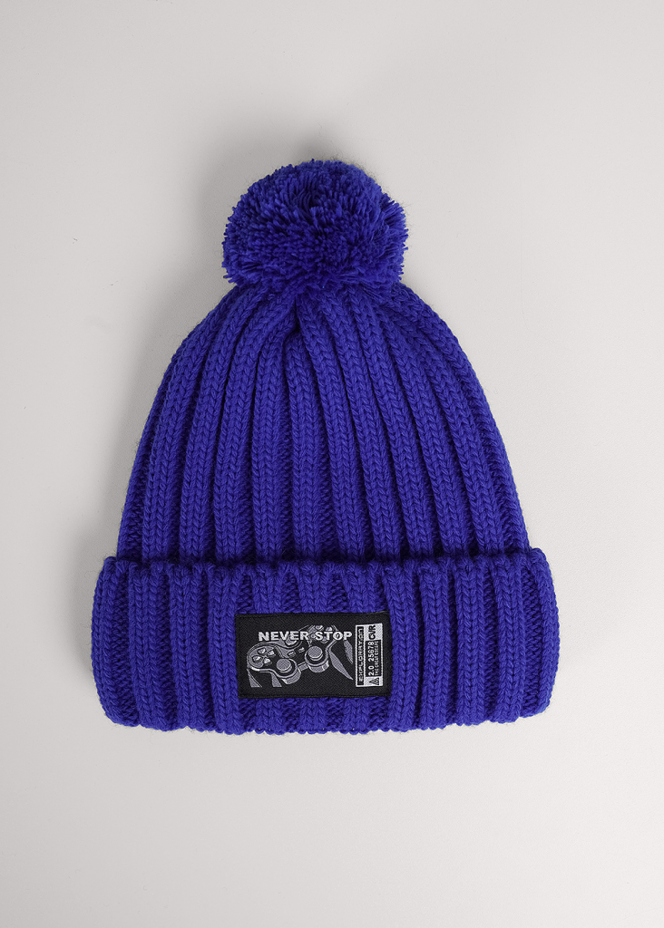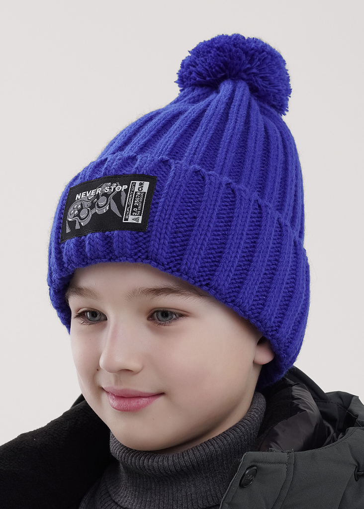Детская шапка с отворотом и ниточным помпоном. Декорирован стильной нашивкой, утепление флисом по всей голове.Отлично подойдёт для холодной зимы.