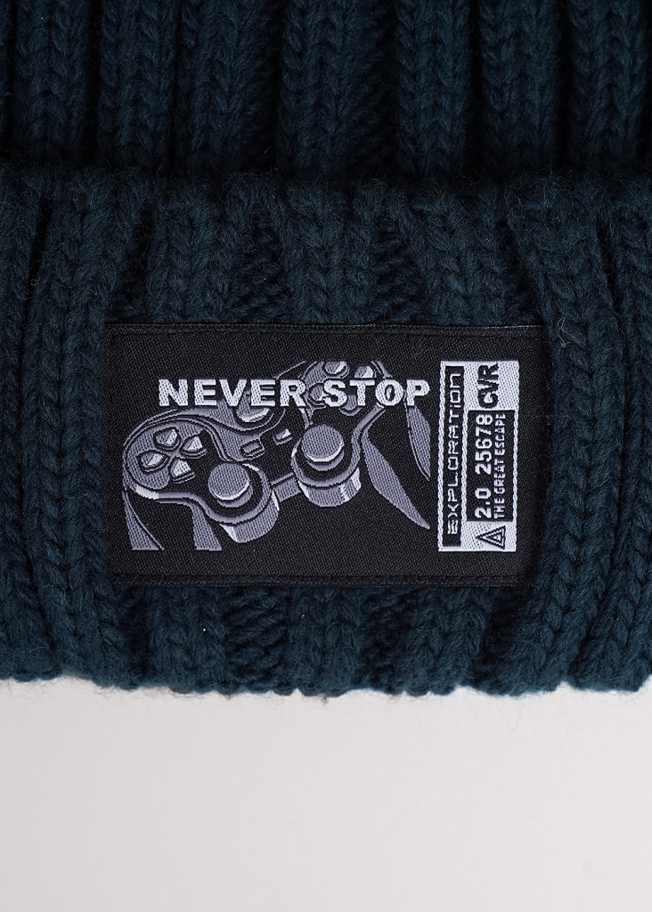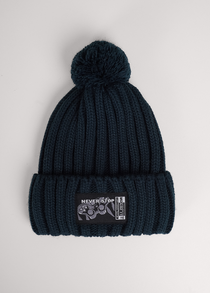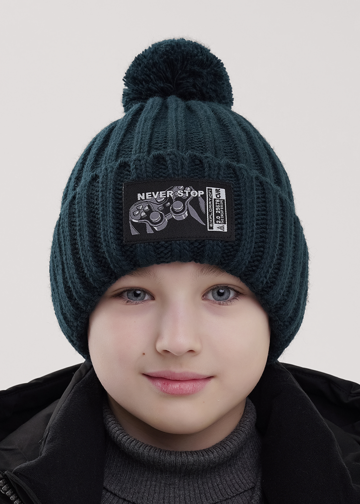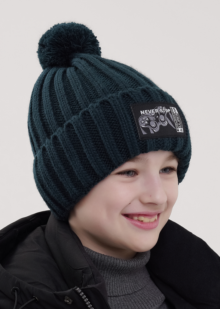 Детская шапка с отворотом и ниточным помпоном. Декорирован стильной нашивкой, утепление флисом по всей голове.Отлично подойдёт для холодной зимы.