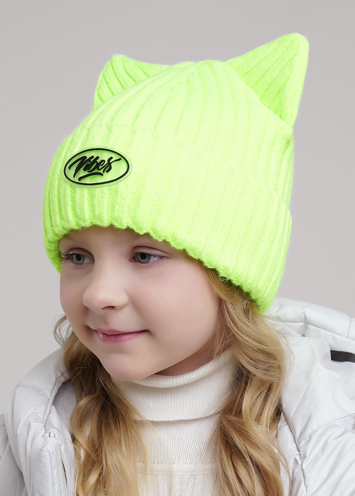 Шапка детская с отворотом, утепление флисом по всей голове, декорирована стильной нашивкой и вязаными ушками. Идеально подойдёт для холодной зимы. Размер 54