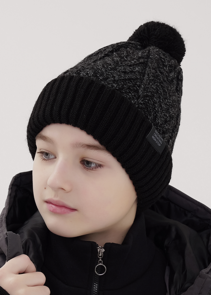 CLE Шапка дет. 454456ап флис, чёрный/меланж т.серый