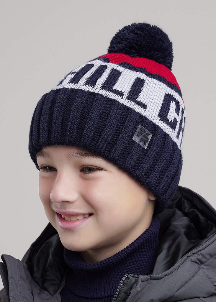 Шапка детская с отворотом и ниточным помпоном, с утеплением флисом по всей голове. Выполнена из высококачественной пряжи, декорирована стильной нашивкой в височной зоне. Станет не только отличной защитой от холода, но и модным аксессуаром.