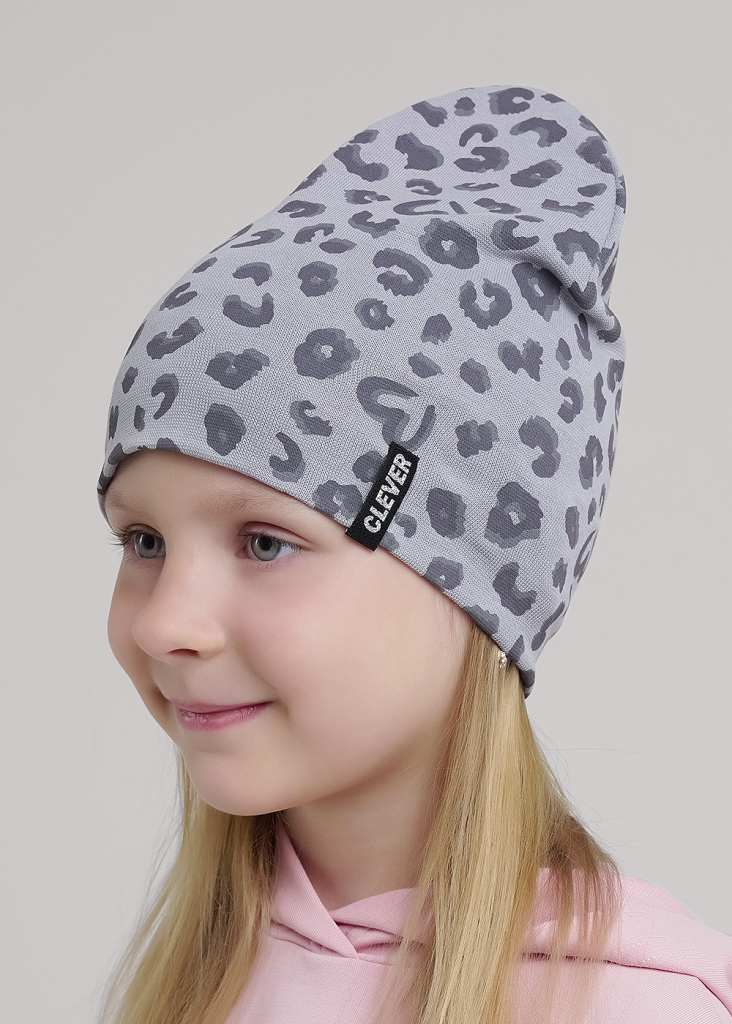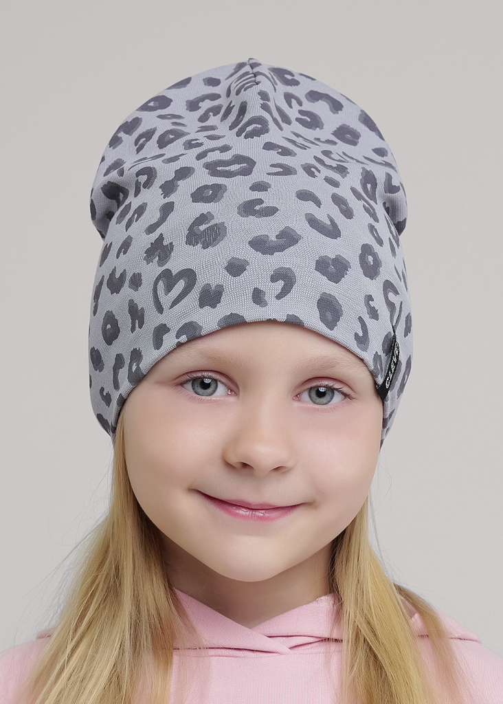 Детская двойная шапка с принтом без отворота. Размер 52-54