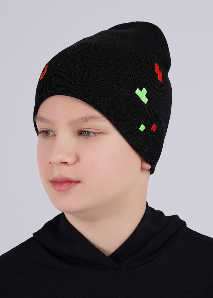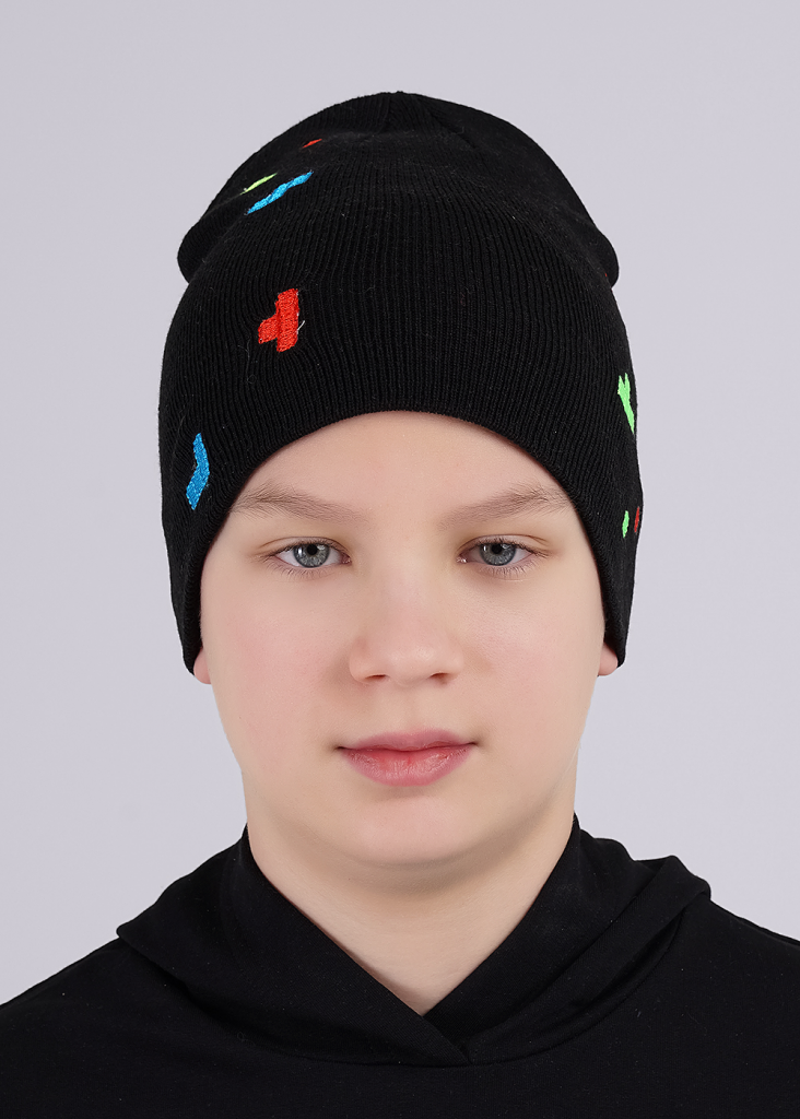 Шапка двойная для мальчика связана из хлопка с добавлением акрила, декорирована вышивкой. Идеально подойдёт для весны - осени. Размер 54-56