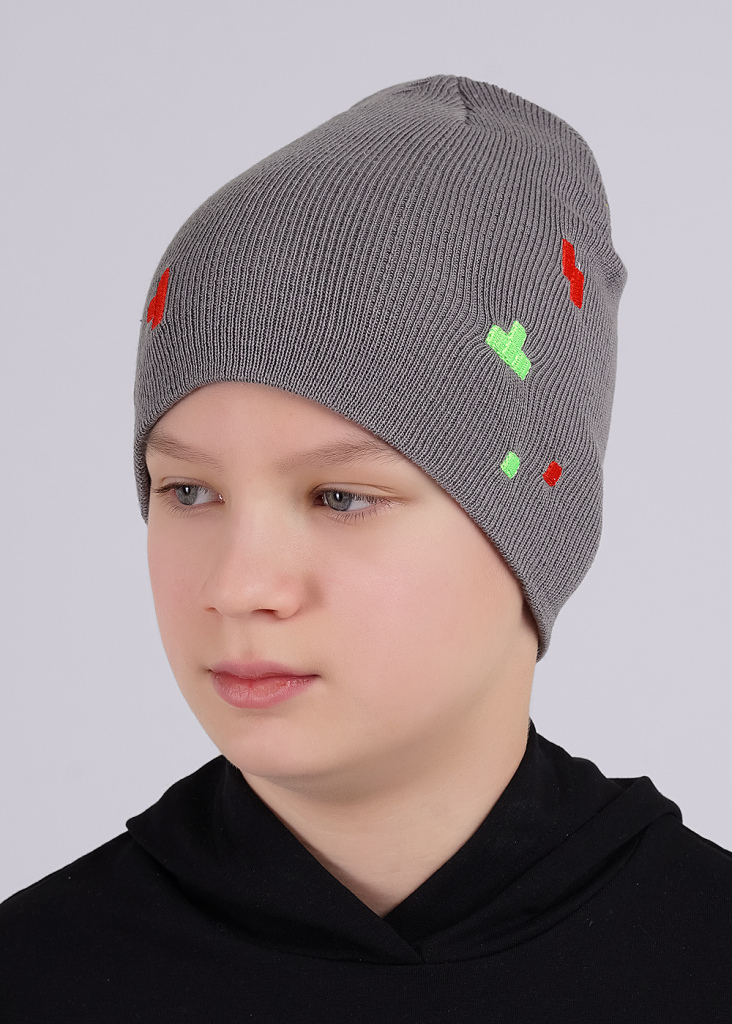 Шапка двойная для мальчика связана из хлопка с добавлением акрила, декорирована вышивкой. Идеально подойдёт для весны - осени. Размер 54-56