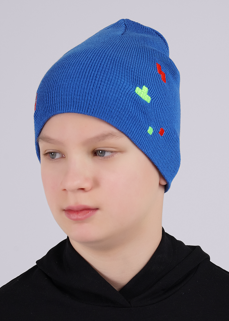 Шапка двойная для мальчика связана из хлопка с добавлением акрила, декорирована вышивкой. Идеально подойдёт для весны - осени. Размер 54-56