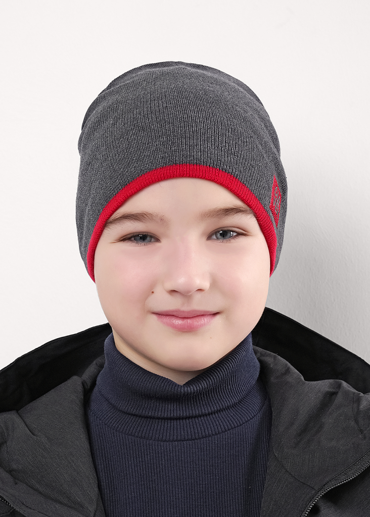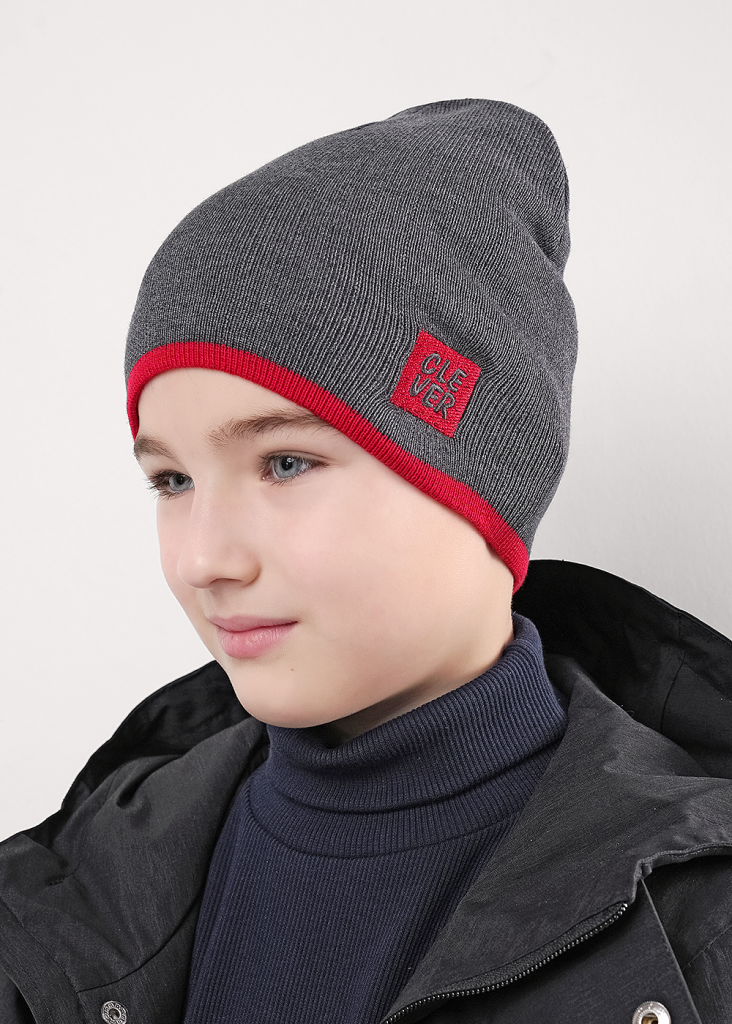 CLE Шапка дет. 554325ха, меланж т.серый/красный