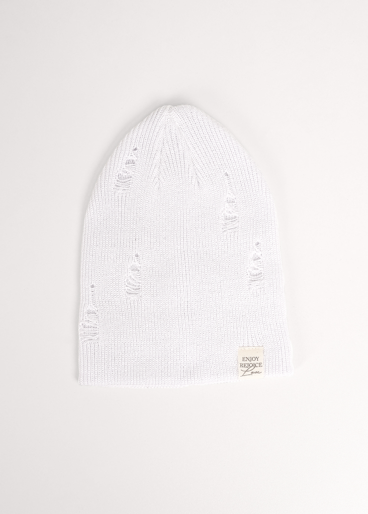 Двойная рваная шапка без отворота, без подклада легко тянется, декорирована стильной нашивкой. Шапка с дырками сочетается со стилем гранж, панк. Станет ярким акцентом, создаст запоминающийся весенний образ. Размер 54-56