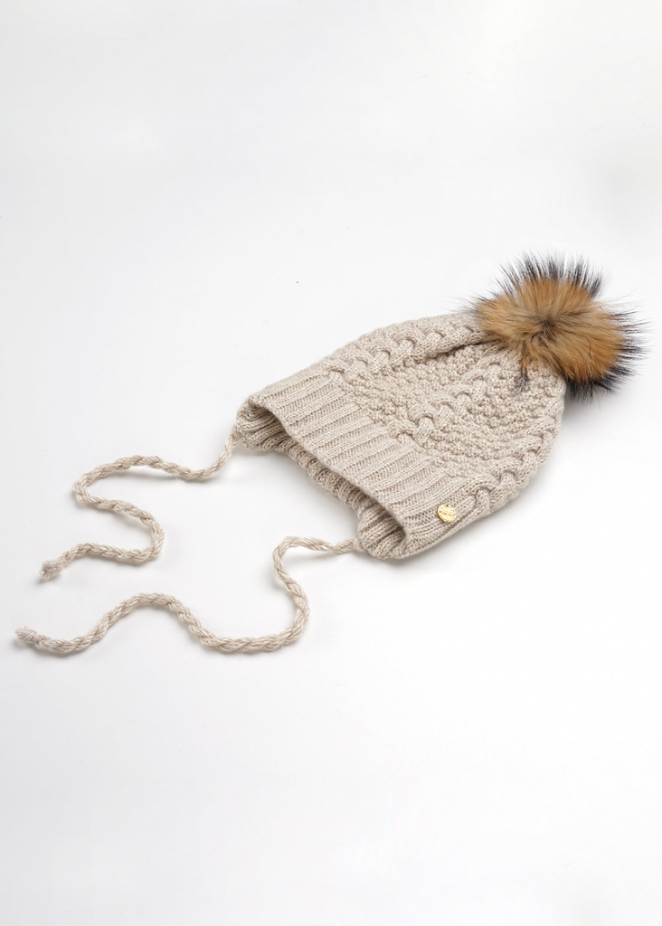 Шапка, выполненная из итальянской пряжи с содержанием мохера, декорирована помпоном из натурального меха, внутри подклад из флиса (100% ПЭ)
