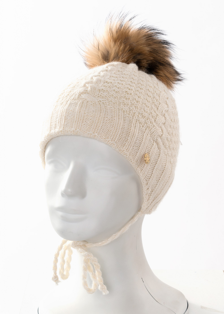 Шапка, выполненная из итальянской пряжи с содержанием мохера, декорирована помпоном из натурального меха, внутри подклад из флиса (100% ПЭ)