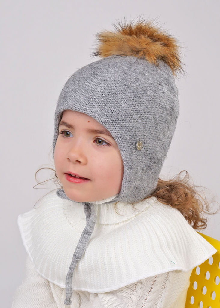 Шапка с удлиненными ушками декорирована помпоном из натурального меха, внутри подклад из флиса (100% ПЭ), утеплитель - синтепон