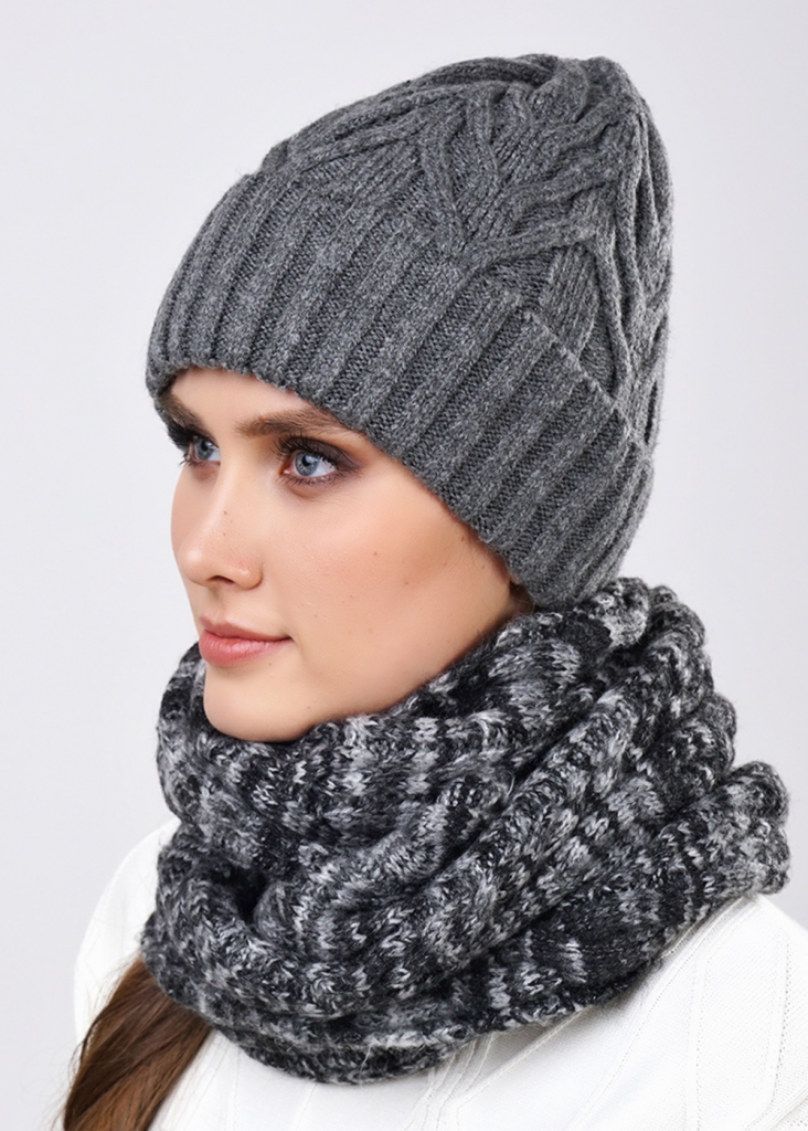 CLE Шарф 113177ап, меланж серый/т.серый