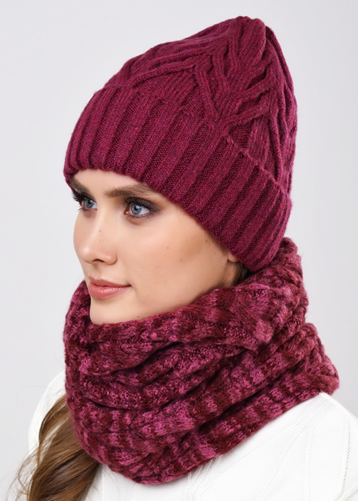 Женский вязаный снуд "восьмерка" из оригинальной двухцветной пряжи, выполнен фактурным переплетением "косы".