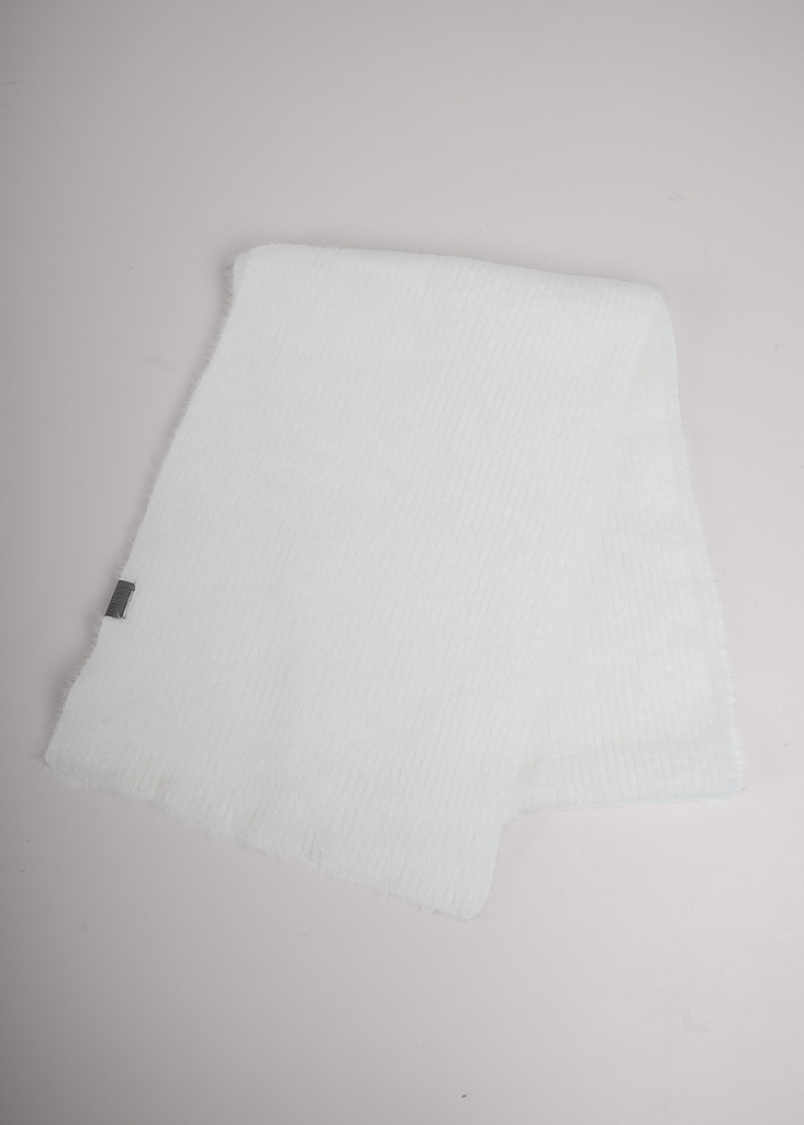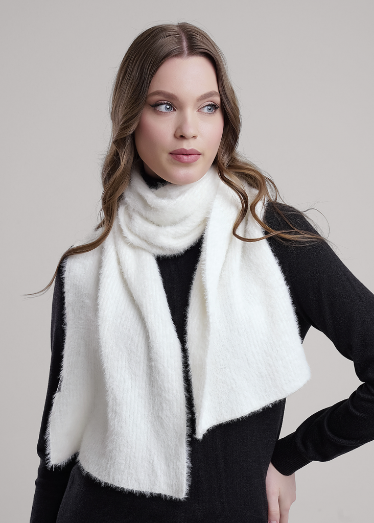 Шарф женский однослойный декорирован стильной нашивкой. Станет не только отличной защитой от холода, но и модным аксессуаром.