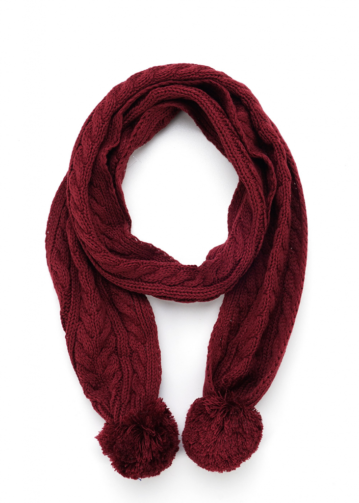 Шарф выполнен фактурным переплетением "косы" и декорирован ниточным помпоном. Размер 14*136 (ширина*длина)
