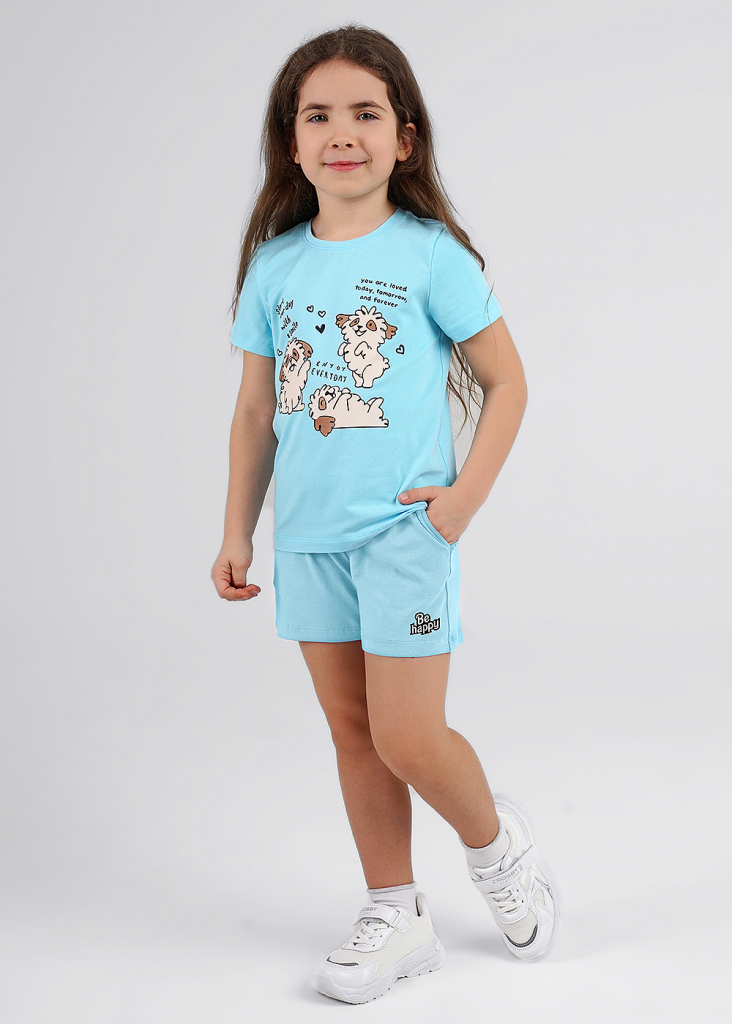 Шорты средней длины из эластичного хлопкового трикотажа. Комфортная посадка, актуальный силуэт и небольшой принт спереди - яркая находка для жаркого лета. Для удобства модель дополнена боковыми карманами.