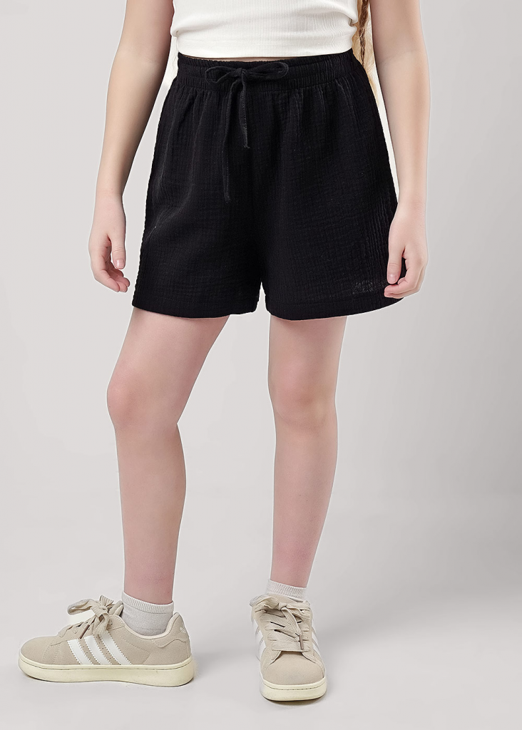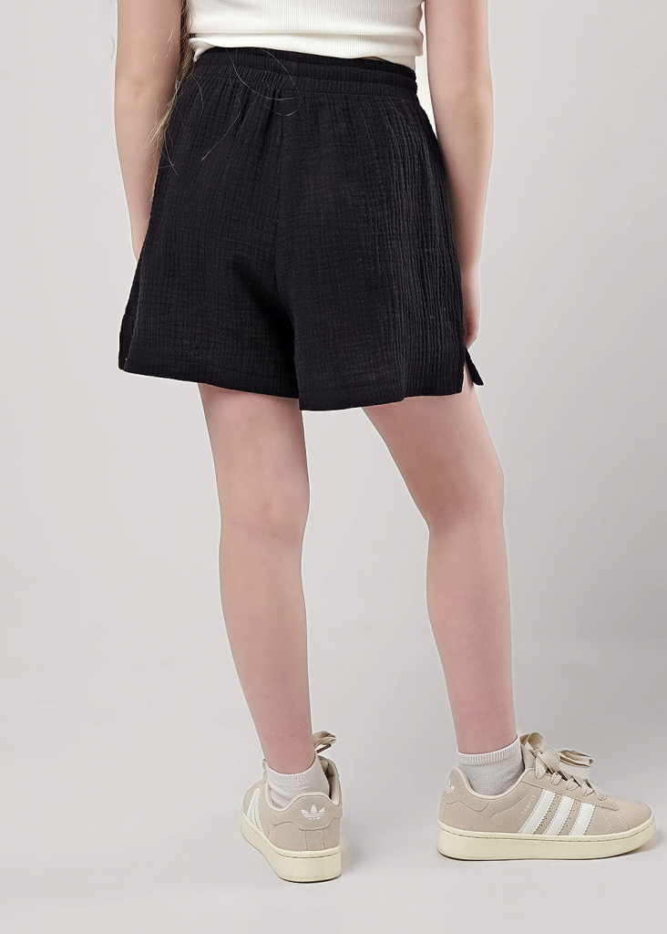 Лёгкие шорты из муслина - находка для юной модницы! Комфортная посадка, регулировка шнуром по поясу, трендовые разрезы по бокам. Такая модель не только подарит комфорт и свободу движений в жаркую погоду, но и сделает твой образ незабываемым.