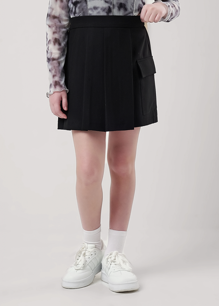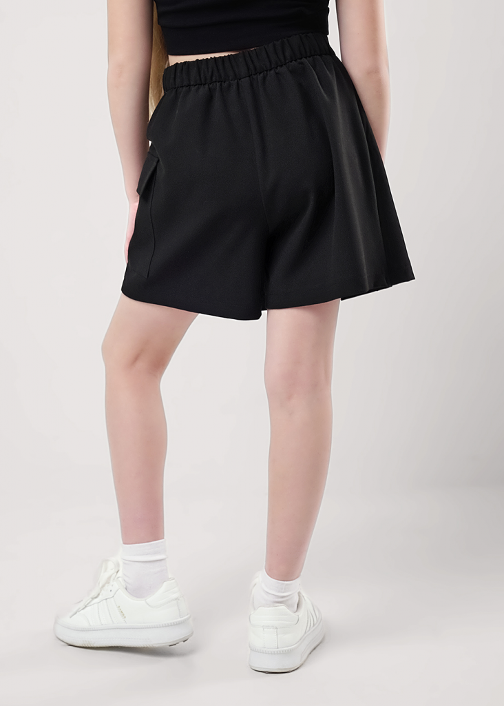 Юбка-шорты из костюмной ткани для продвинутых и стильных. Средняя длина, комфортная посадка за счёт резинки по спинке. Трендовые складки и накладной карго-карман. Сочетай юбку с любимыми топами и футболками, будь в тренде!