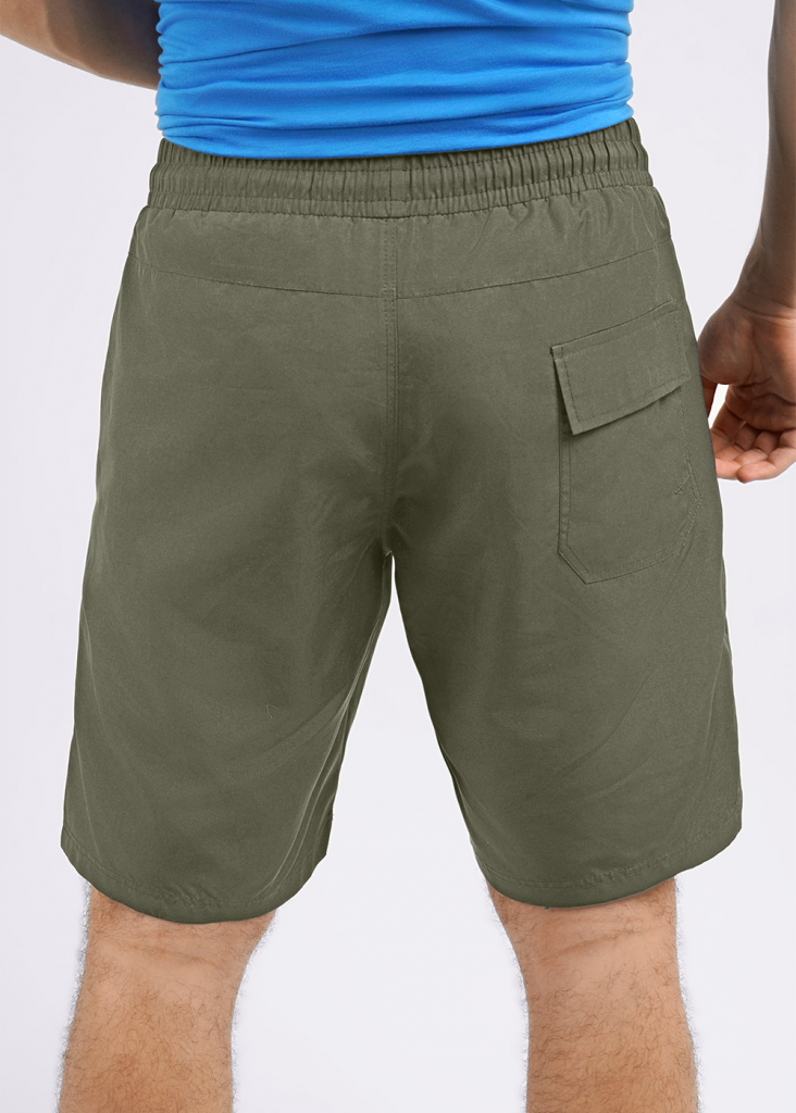 Мужские пляжные шорты с подкладом-плавками из мягкой сетки, поясом и регулируемым шнуром. Шорты удобны в носке, для функциональности предусмотрены карманы. Идеально сочетаются с любой одеждой и хорошо смотрятся на фигуре.