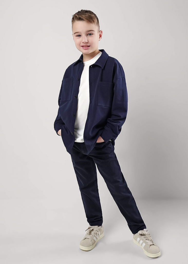 Стильная рубашка из трикотажного полотна станет модной новинкой в твоём гардеробе! Комфортная посадка по фигуре, актуальный объём и практичная цветовая гамма- то, что нужно для создания повседневного школьного образа и отличного настроения!