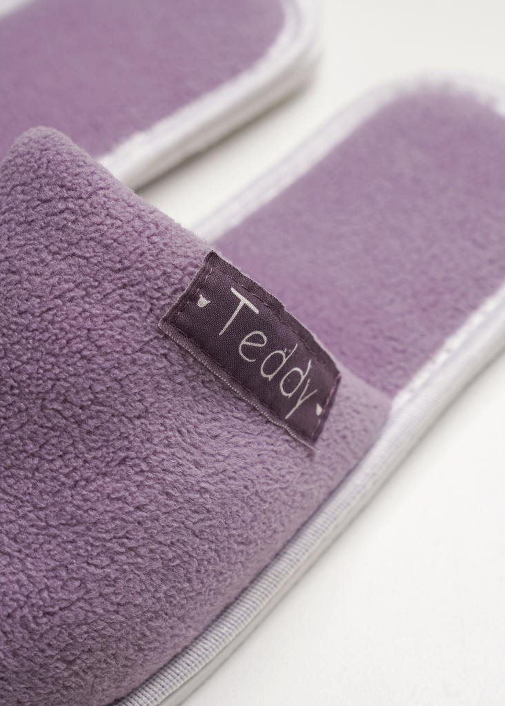 Лёгкие, домашние тапочки для дома с закрытым носом из трикотажного полотна флис, с нашивкой.Толстая подошва.