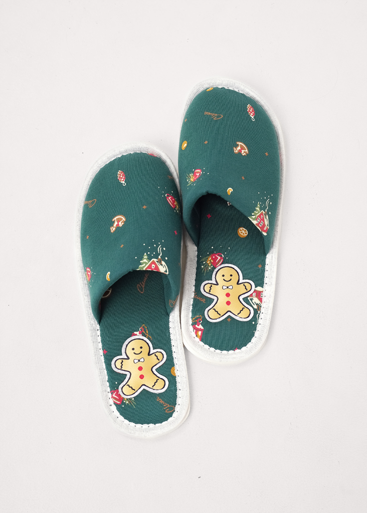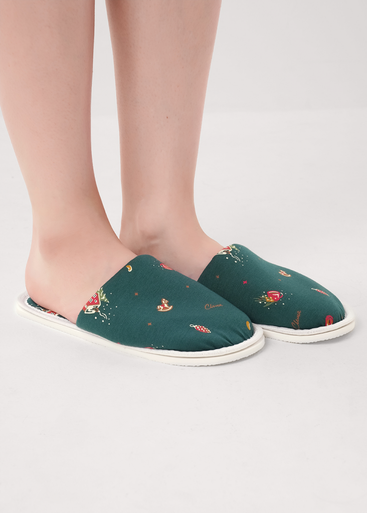 CLE SW15-1201C Пантолеты жен. домаш. Морозко, т.зелёный/красный