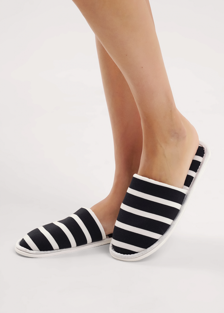 Лёгкие тапки для дома и отдыха с закрытым носом из хлопкового трикотажного полотна пике. Толстая подошва.