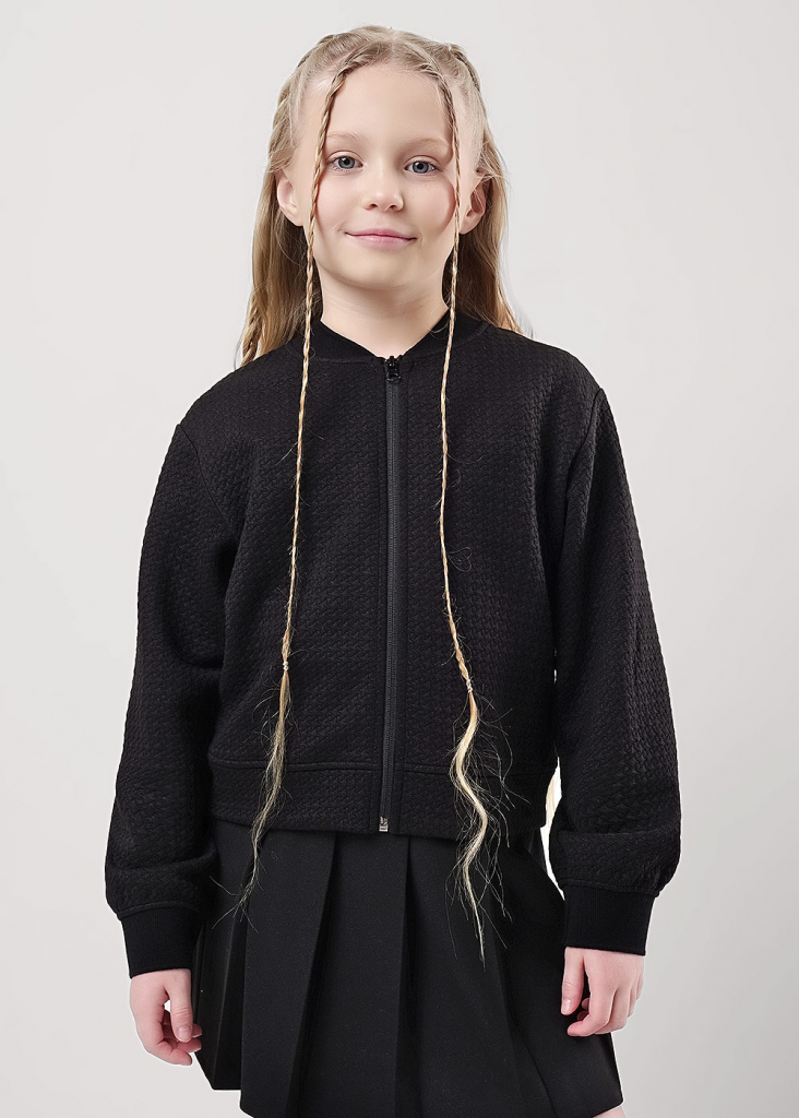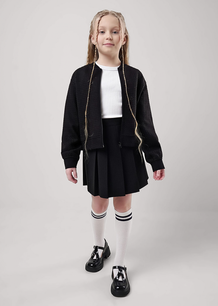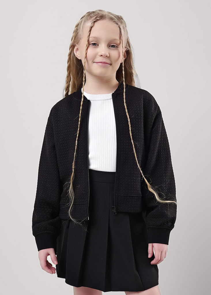 Стильный бобмер из капитония станет модной новинкой в твоём гардеробе! Комфортная посадка по фигуре, актуальный объём и практичная цветовая гамма- то, что нужно для создания повседневного школьного образа и отличного настроения!