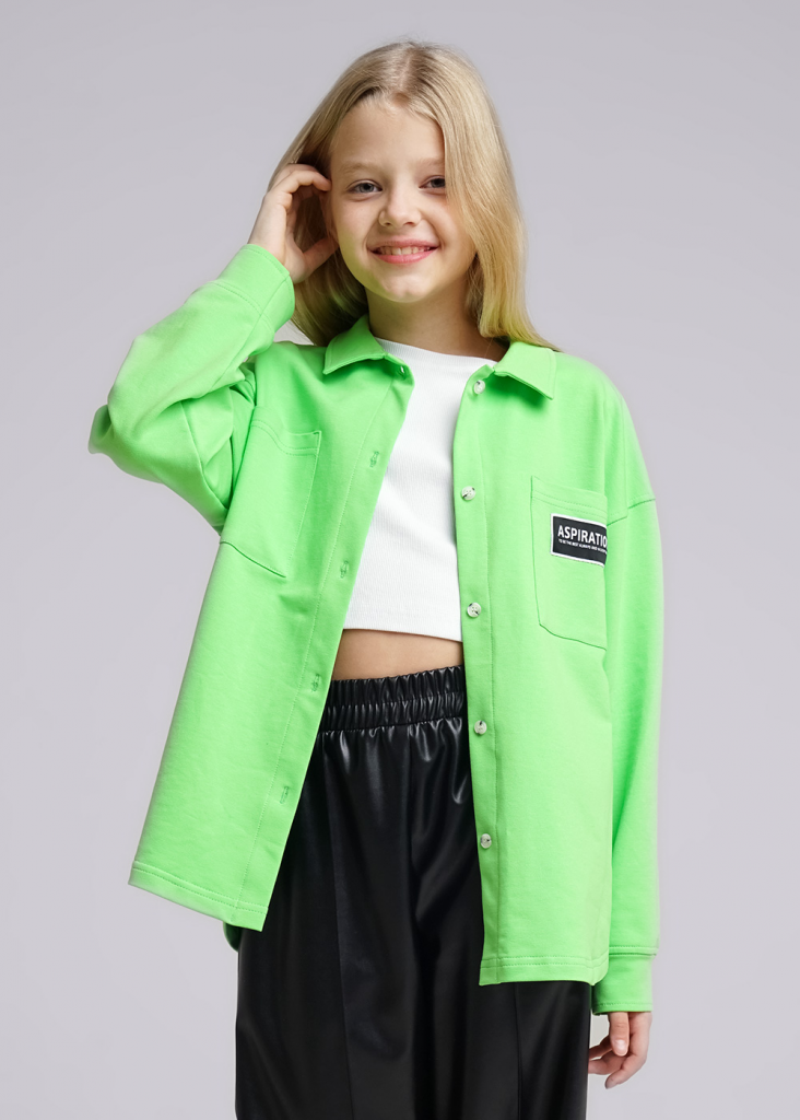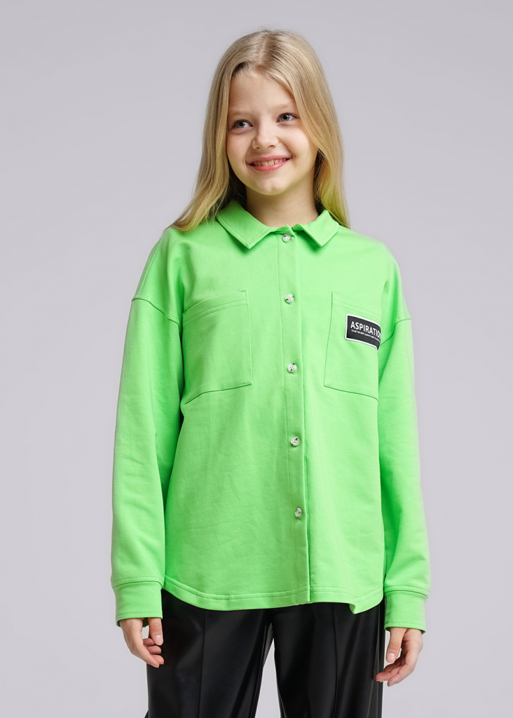 Невероятно яркая рубашка из футера поможет создать стильный и эффектный образ! Свободный покрой, стильная нашивка спереди, немного спущенная линия плеча. Комбинируй модель с кожаными или клетчатыми брюками из новой коллекции. Будь неповторима!