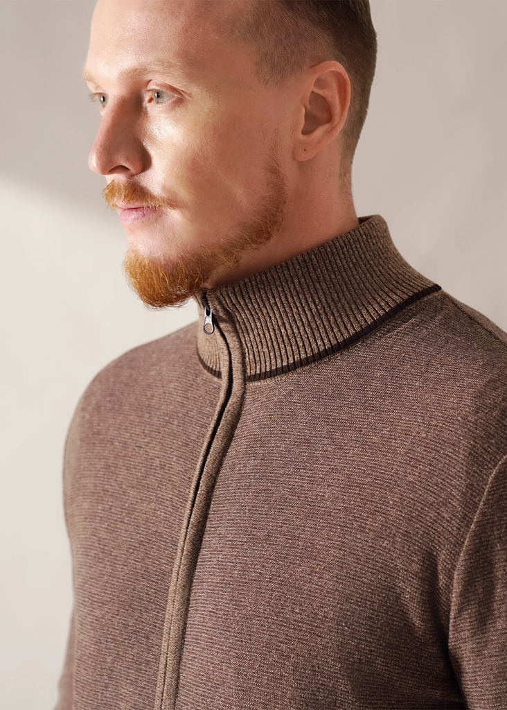 Жакет мужской на молнии с длинным рукавом и воротником стойкой. Прекрасное решение на холодное время года. Данное изделие комфортно и практично в носке, прекрасно сохраняет тепло. Можно скомбинировать с футболкой, брюками или джинсами.