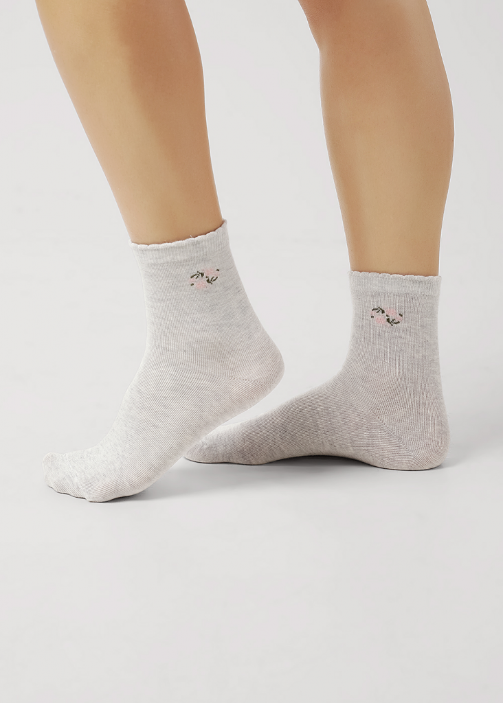 носки женские с цветочком на паголенке, красивая резинка " пикот"