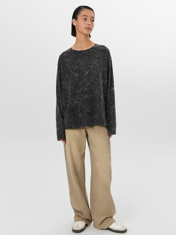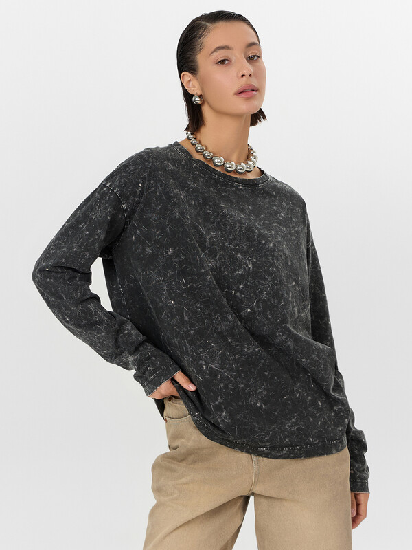 Женский лонгслив свободного силуэта, выполненный из хлопковой кулирки, станет стильным и удобным дополнением вашего гардероба. Горловина круглой формы и спущенное плечо придают изделию современный и расслабленный вид. Пройма слегка углублена, что добавляет свободу движений и комфорт при носке. Длинные рукава делают этот лонгслив идеальным для прохладных дней. Отличный выбор для тех, кто ценит качество и стиль в повседневной одежде!