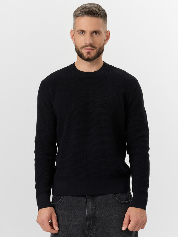 Мужской джемпер черного цвета — это универсальная модель для создания лаконичных и стильных образов. Джемпер выполнен из хлопка, который обеспечивает мягкость, воздухопроницаемость и комфорт. Классический прямой крой, длинные рукава и круглая горловина делают его идеальным базовым элементом гардероба.