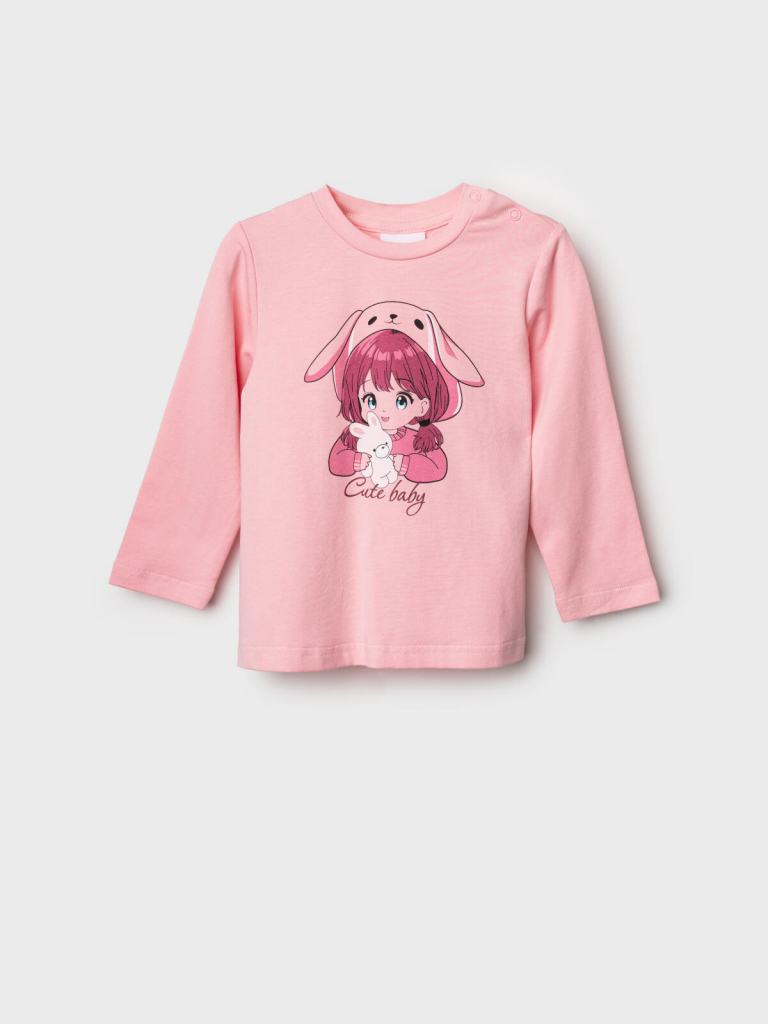 > Джемпер детский трикотажный для девочек (футболка с длинными рукавами) розовый