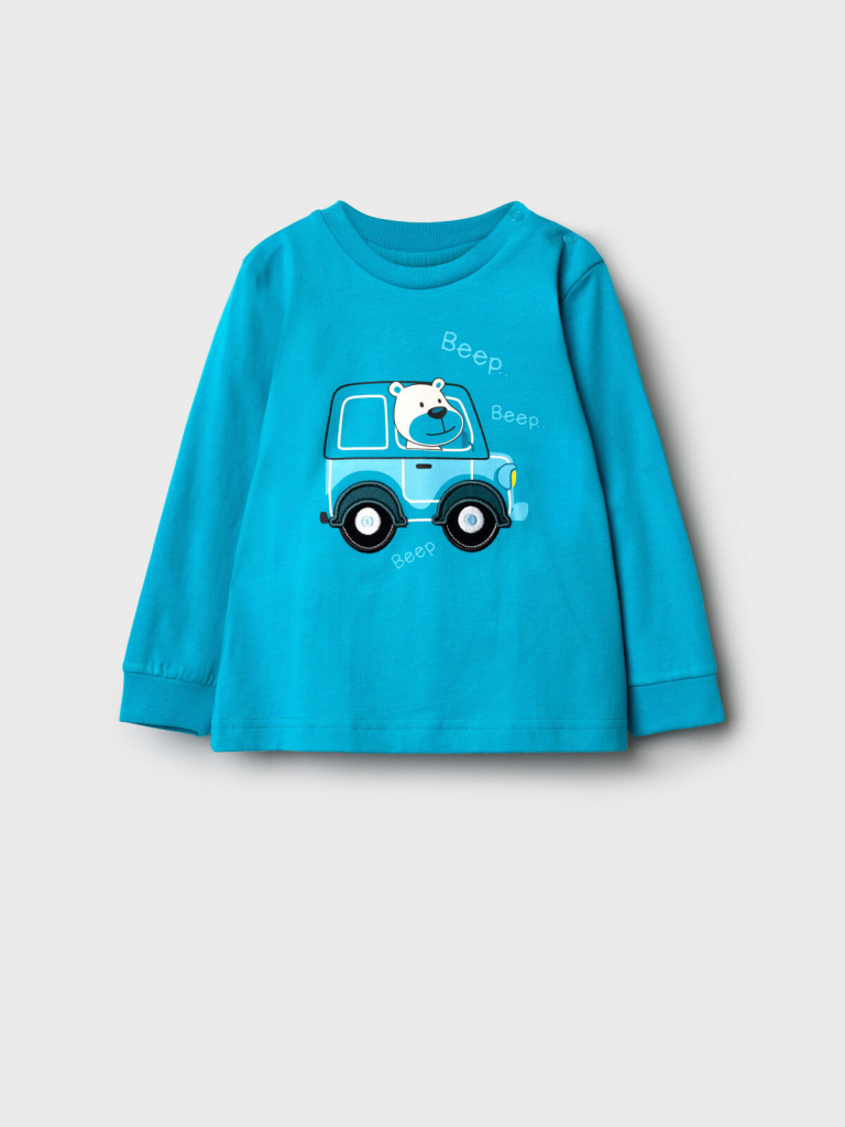 > Джемпер детский трикотажный для мальчиков (футболка с длинными рукавами) бирюзовый