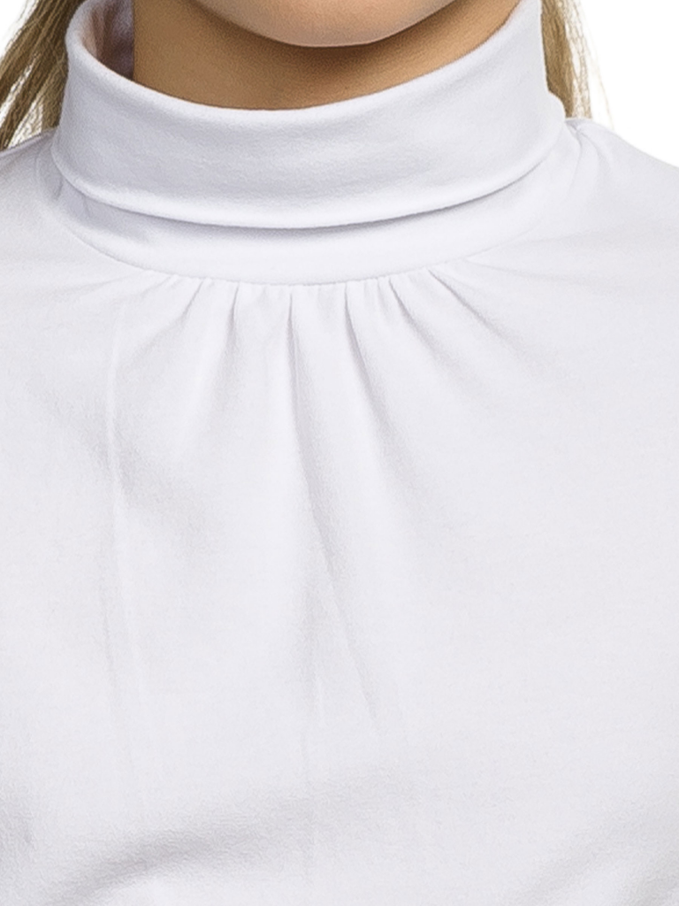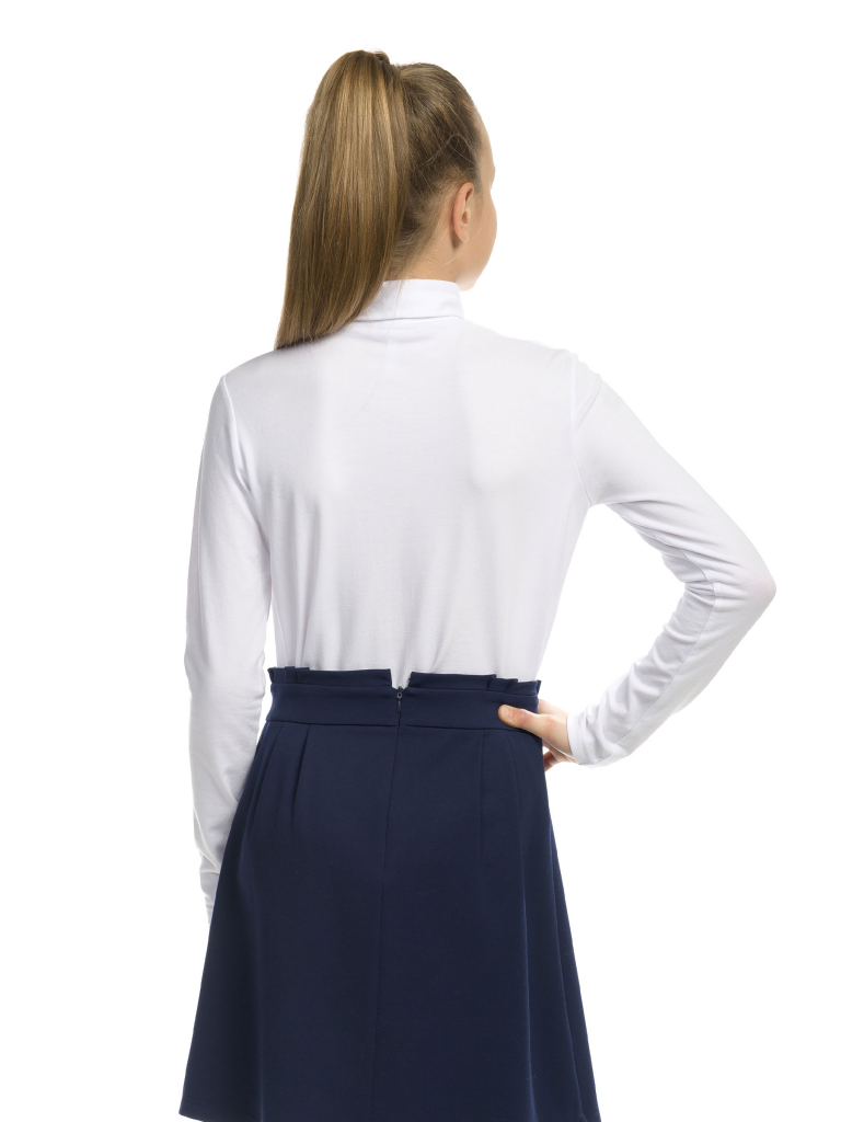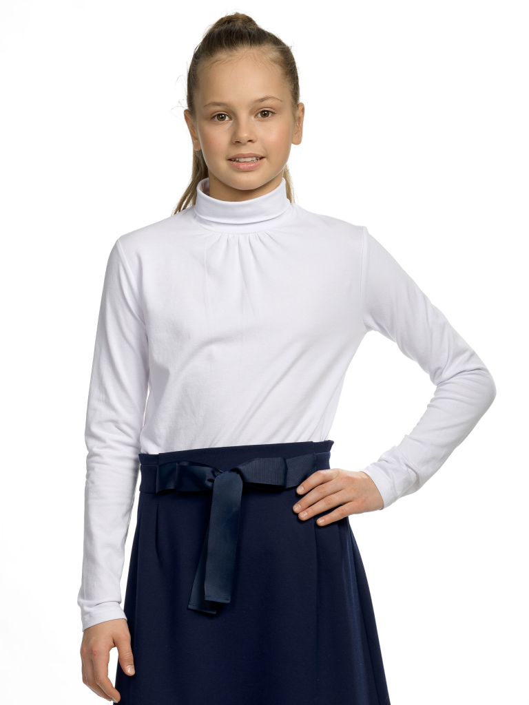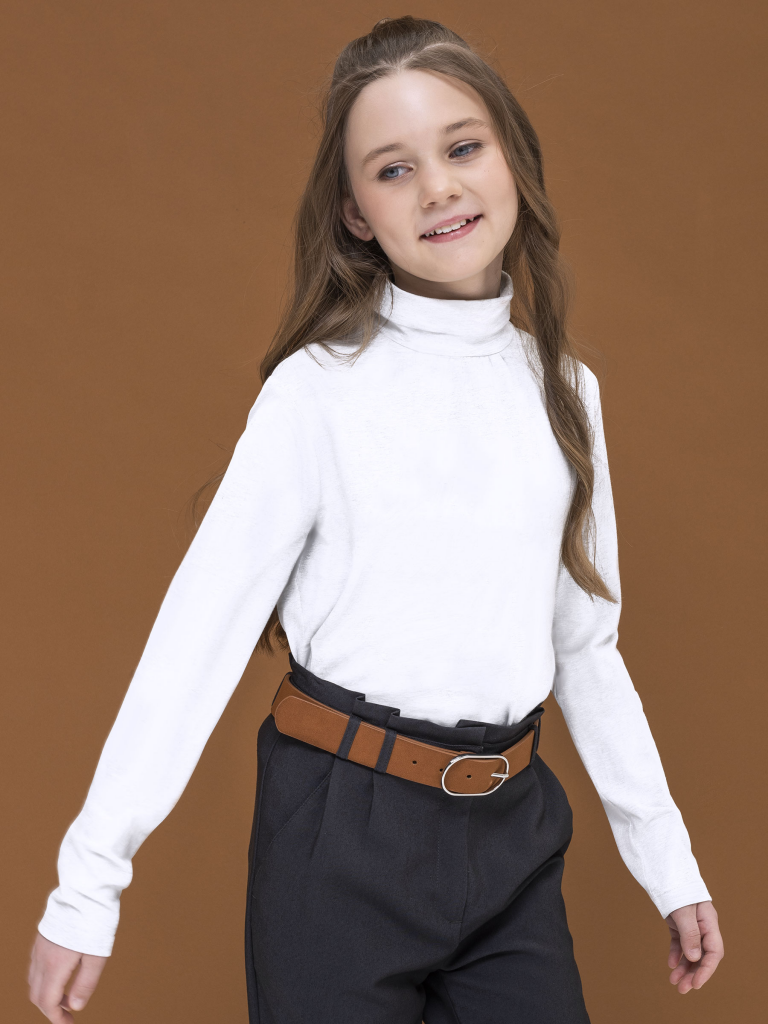 Водолазка для девочки школьная с длинным рукавом. Трикотажная водолазка, комфортно облегающая фигуру и лишенная застежек, придает ребёнку свободу движений и лёгкость в носке. Благодаря преобладающему содержанию высококачественного хлопка, она обеспечивает превосходную воздухопроницаемость, а эластан сохраняет форму изделия долгое время, не допуская его растяжения. Водолазка школьная представляет собой идеальное сочетание минимализма и изящества, украшенного лишь декоративной сборкой у горловины спереди. Базовая белая водолазка для девочки — универсальное решение, которое легко сочетается с различными элементами гардероба, будь то брюки, юбки или сарафаны. Это не просто одежда, это возможность создавать многообразные образы для любого случая — от повседневного до торжественного. Водолазка детская — это не просто выбор для школы, это инвестиция в стиль и комфорт вашего ребёнка. Рекомендуемый уход за изделием обеспечит его долговечность и сохранение первоначального внешнего вида даже после многократных стирок: стирать при температуре не выше 30 °C, без предварительного замачивания, с изнанки, а затем расправить перед сушкой. Не забудьте выбрать нужный размер, ориентируясь на таблицу размеров на фото. И помните, что цвет изделия на экране вашего устройства может незначительно отличаться от его реального цвета.