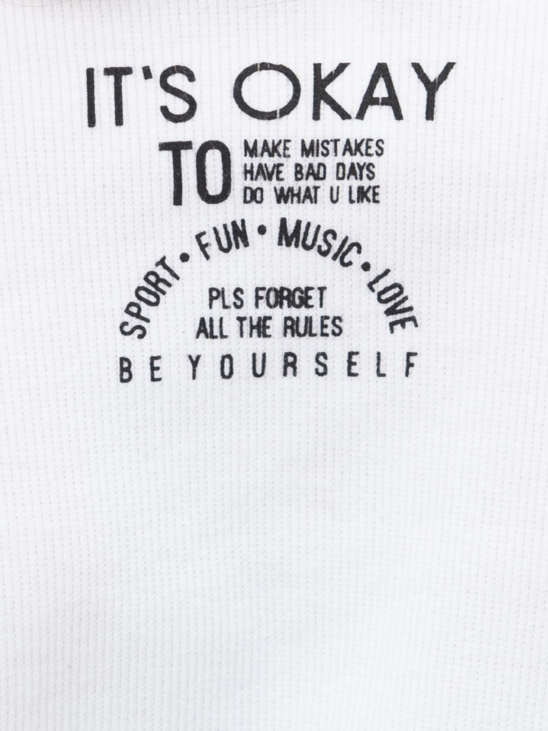 Джемпер в школу из нежного, мягкого материала кашкорсе. Стиль: унисекс. Высокая горловина стойка и длинный рукав не сильно обтягивают и дают свободу движений. Текстовый принт на спине переводится как: Это нормально: Совершать ошибки, Иметь плохие дни, Делать то, что тебе нравится. Спорт веселье музыка – любовь. Пожалуйста, забудь все правила. Будь собой. Он привлекает внимание и создает настроение. Можно носить с любым верхом и в качестве самостоятельного предмета одежды. Удобный не только для школы, но и для прогулок, встреч с друзьями.