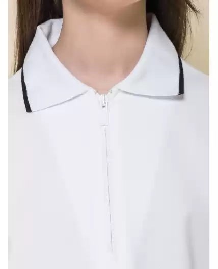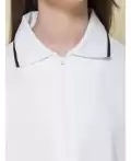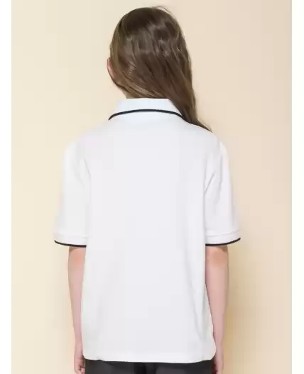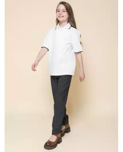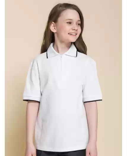 Футболка из трикотажа пике для девочки. Приятный, плотный, мягкий материал из 100% хлопка. Почти не мнется, гигроскопичен, с хорошей воздухопроницаемостью, не требует сложного ухода. Центральная застёжка на модную короткую молнию из пластика — любой ребёнок сможет быстро надеть и снять изделие. Лаконичный дизайн позволяет сочетать футболку с различными брюками и юбками. Модный и практичный вариант школьной одежды для девочек.