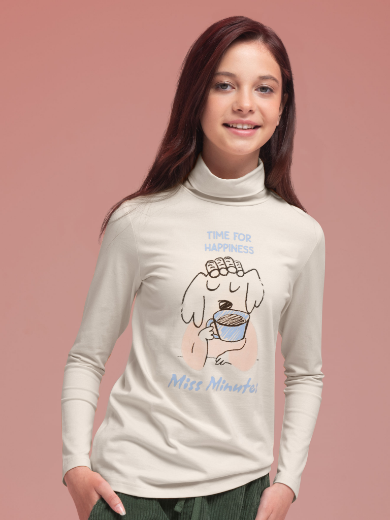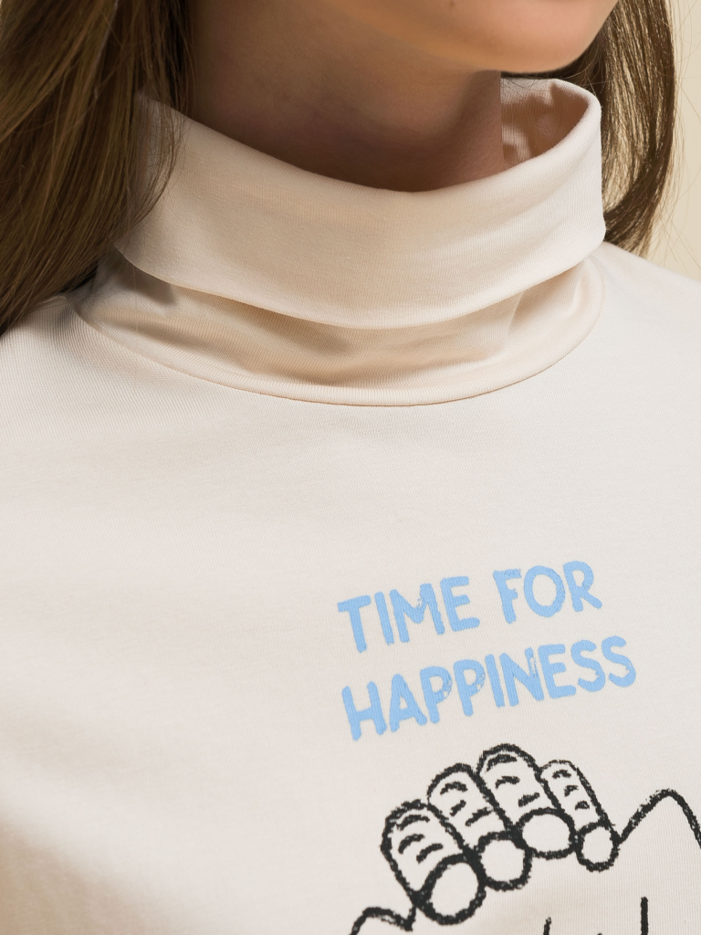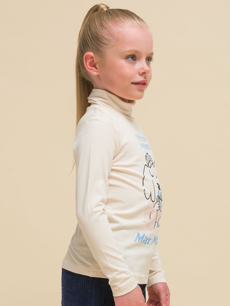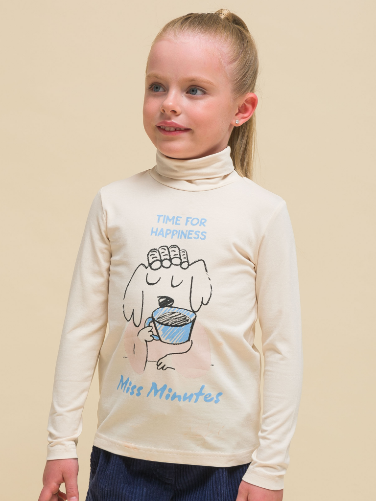 Водолазка детская для девочки. Джемпер актуального свободного силуэта подарит ребёнку комфорт и не будет стеснять его движений. Водолазка с длинным рукавом дополнена воротником-стойкой, который защищает шею от холода и ветра — нет необходимости дополнительно надевать шарф. За изделием легко ухаживать. В составе ткани пребладает высококачественный хлопок — лонгслив приятен на ощупь и безупречно пропускает воздух, позволяя коже ребёнка дышать. Эластан помогает изделию сохранить отличную форму в течение долгого времени. Водолазка с принтом по переду. Принт мягкий и прочный, без проблем переносит частые стирки. На принте изображена собачка в бигуди с чашкой кофе, надписи переводятся: «время для счастья», «пропустить минутку». Джемпер с воротником выполнен в двух трендовых цветах: красный и бежевый (кремовый оттенок). Водолазку легко комбинировать с различными брюками, джинсами, легинсами, юбками, сарафанами. Размерный ряд: 2 (92): 3 (98): 4 (104): 5 (110): 6 (116), 7 (122): 8 (128): 9 (134): 10 (140): 11 (146). Водолазка с горлом станет замечательным дополнением гардероба для маленьких девочек дошкольного и младшего школьного возраста, а также девочек-подростков. Его можно носить в детский сад, школу, на прогулки, отдых, а также дома. Водолазка подходит для круглогодичного применения: летом, осенью, зимой, весной и демисезон. Стильный и практичный подарок дочери, внучке или сестре на Новый год и любой другой праздник.