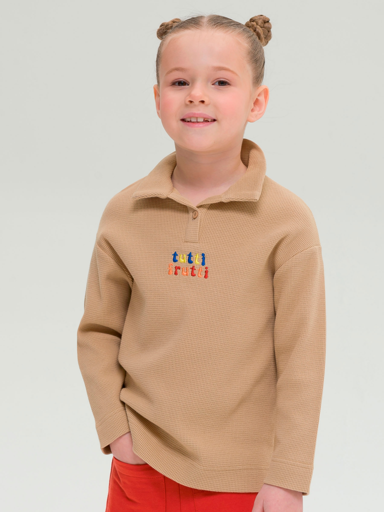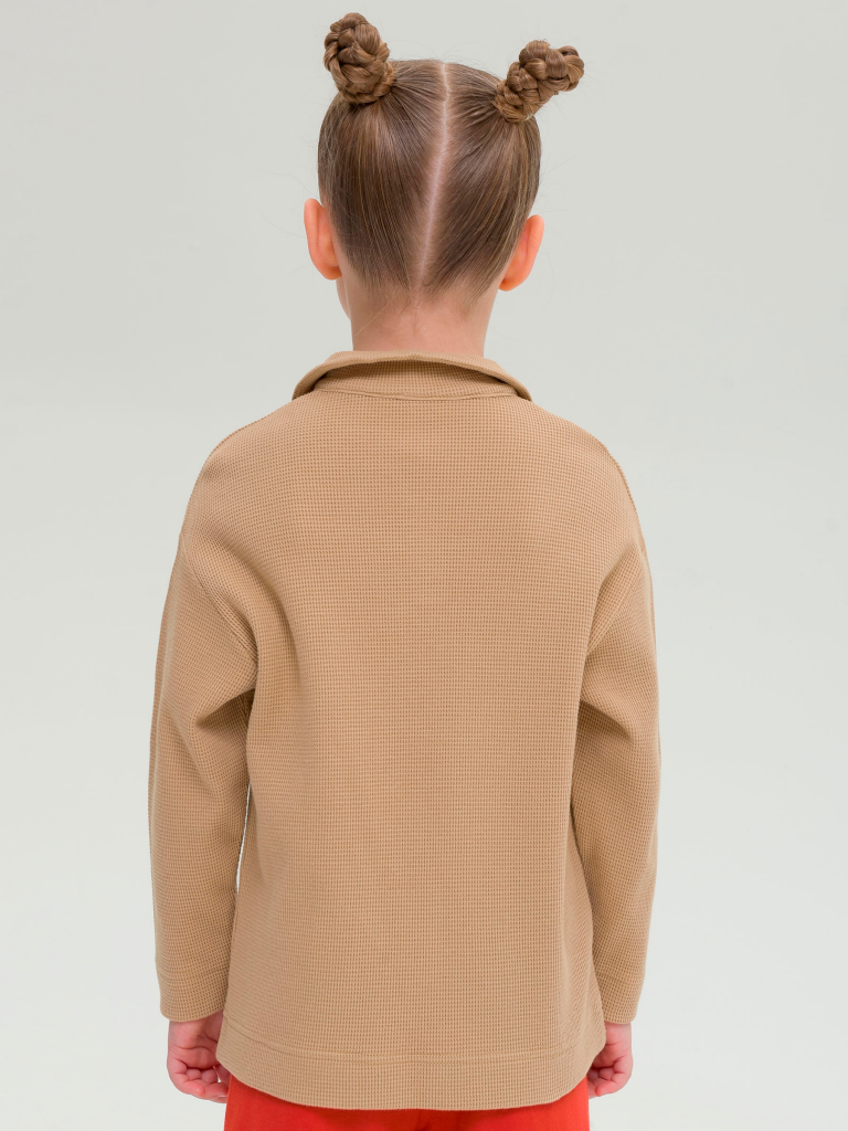 Джемпер для девочки. Молодежная футболка поло с длинным рукавом, свободного прямого кроя и актуальный оверсайз силуэт делают изделие невероятно модным и удобным. Футболка-поло с воротником, отложным, короткая планка на одной пуговице. Рукав рубашечного типа к низу зауженный. По низу изделия и низу рукава выполнена широкая подгибка. Тренд сезона - тактильно приятная, фактурная ткань вафля. Толстовка детская без капюшона согреет в прохладную погоду, охладит в жаркую пропуская воздух, подстраиваясь под нужный температурный режим. Можно надевать под ветровку как весенний джемпер, под тонкую жилетку как летний джемпер или в качестве самостоятельного элемента верхнего гардероба девочек. Объемная кофта подростковая самая уютная вещь на весну и на лето. Свитшот для малыша - базовая вещь в гардеробе стильного подростка. Благодаря уникальному крою, удлиненный джемпер комфортно подойдет для любой фигуры девушки, для высоких и невысоких детей. Мягкий трикотажный лонгслив для девочки с длинным рукавом подойдет на улицу для прогулок, отдыха на природе, путешествий, посещение кружков и секций, на танцы, хип-хопа, занятия спортом, как домашняя одежда для дома и повседневный вариант. Стильный лонгслив яркий с принтом и рисунком станет самым любимым и востребованным в гардеробе ребенка.