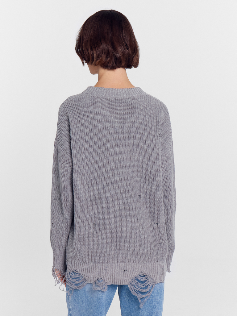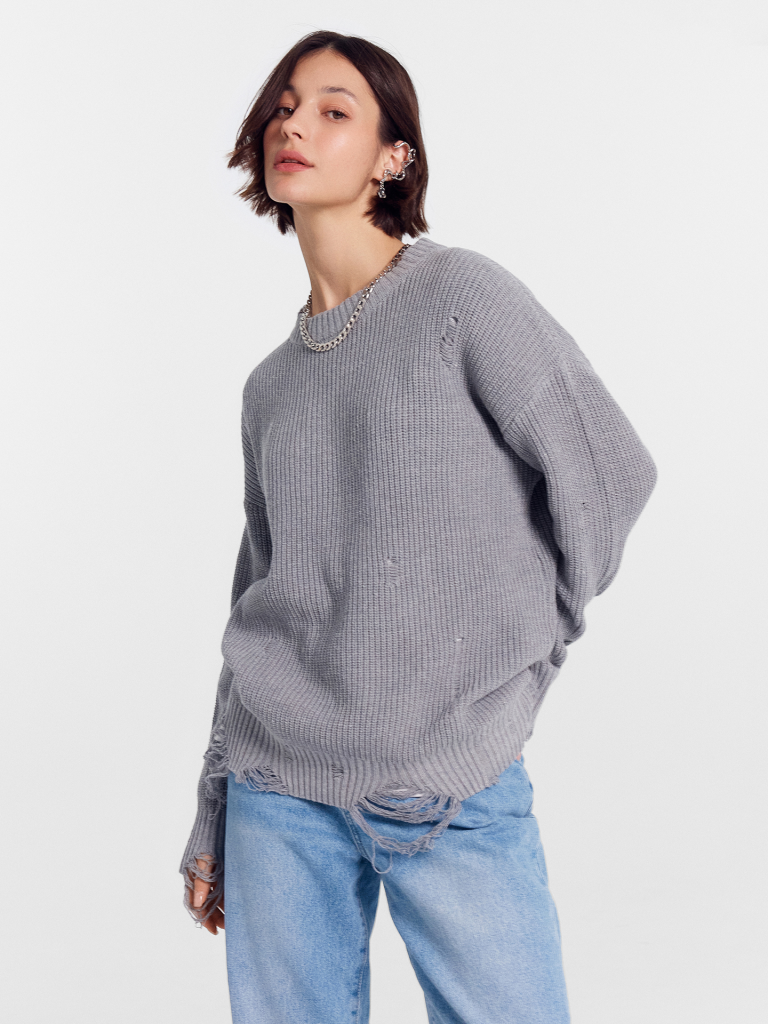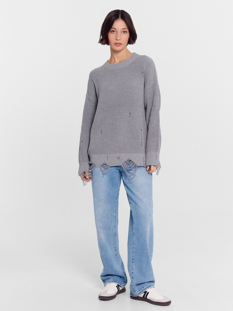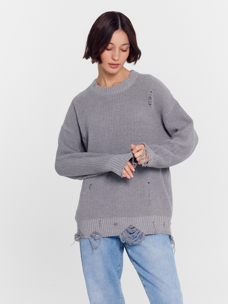 Женский джемпер с рваными деталями - одна из популярных моделей сезона, которая подчеркнет вашу индивидуальность и смелый взгляд на стиль. Модель оверсайз с длинными рукавами обеспечивает комфорт и свободу движений. Особое внимание привлекают стильные декоративные рваные детали, которые придают джемперу оригинальный и современный вид. Эта модель станет ярким акцентом в вашем гардеробе, позволяя создавать стильные и современные образы для любого случая. Рекомендуем!