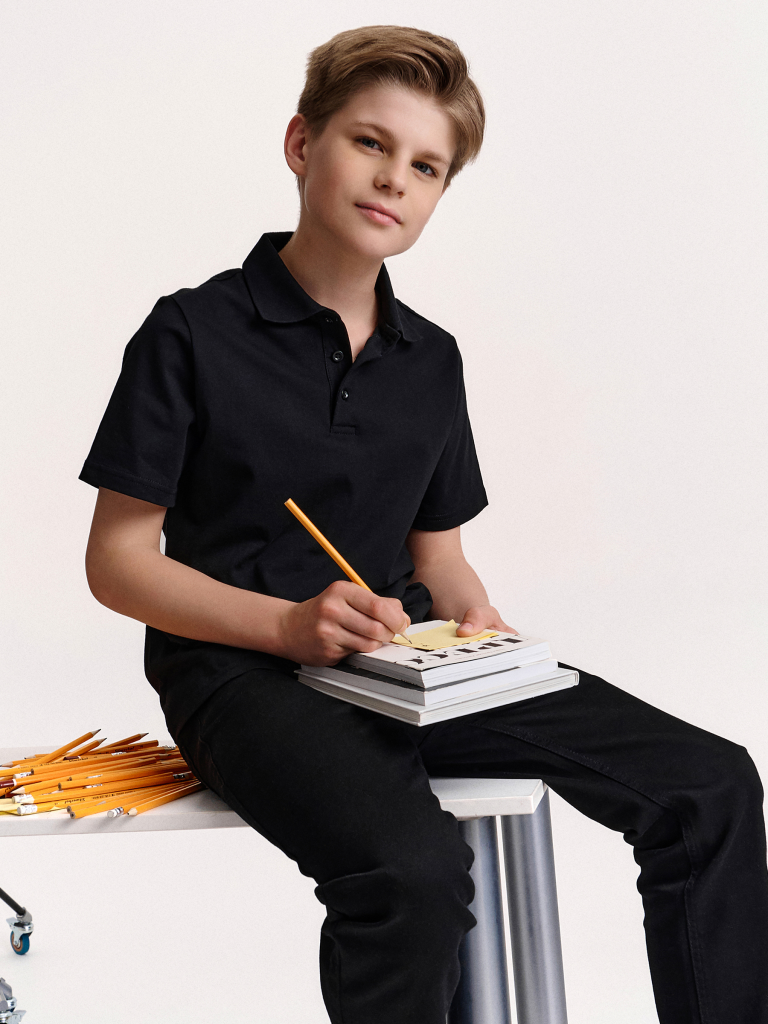 Поло из трикотажа с коротким рукавом — базовая и стильная вещь для мальчика Это поло — универсальная классика, которая всегда остаётся в моде и отлично подходит для школьного гардероба. Мягкий трикотаж комфортен, хорошо тянется и сохраняет форму, а короткие рукава делают его идеальным выбором для тёплой погоды и когда в школе жарко. Умеренный объём и аккуратный крой обеспечивают удобство и свободу движений в течение всего дня. Поло легко сочетать с брюками, джинсами или шортами — универсальный вариант для школы, прогулок и активного отдыха. Стильное, практичное и комфортное — это поло станет базовой и незаменимой частью гардероба вашего ребёнка. Выбирайте нужный размер по таблице размеров на фото. Цвет товара на экране вашего устройства может отличаться от цвета изделия вживую.