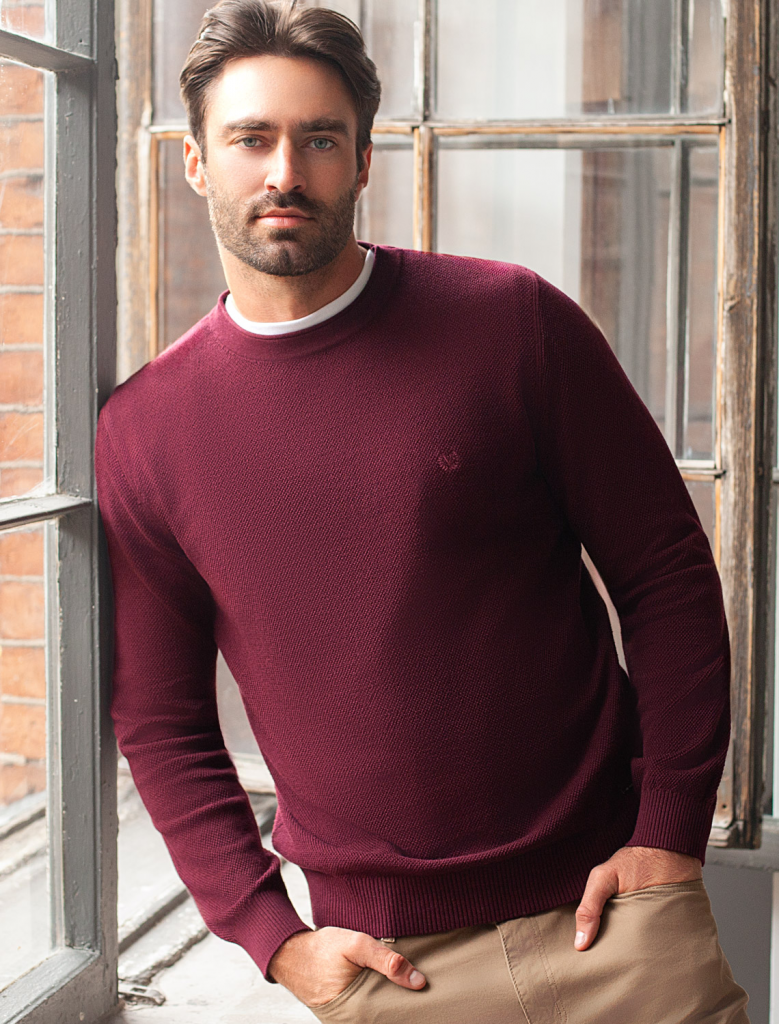 Джемпер фактурной вязки «оксфорд» выполнен из хлопковой пряжи с добавлением нейлона. Модель с круглым воротом дополнена вышитым логотипом бренда и классическим металлическим лого. Изделие гармонично впишется в образ как с брюками, так и с джинсами. Вторым слоем к контрастной футболке. Хлопковая пряжа хорошо сохраняет тепло при этом, не перегревая тело. Нейлон в составе способствует формоустойчивости.
