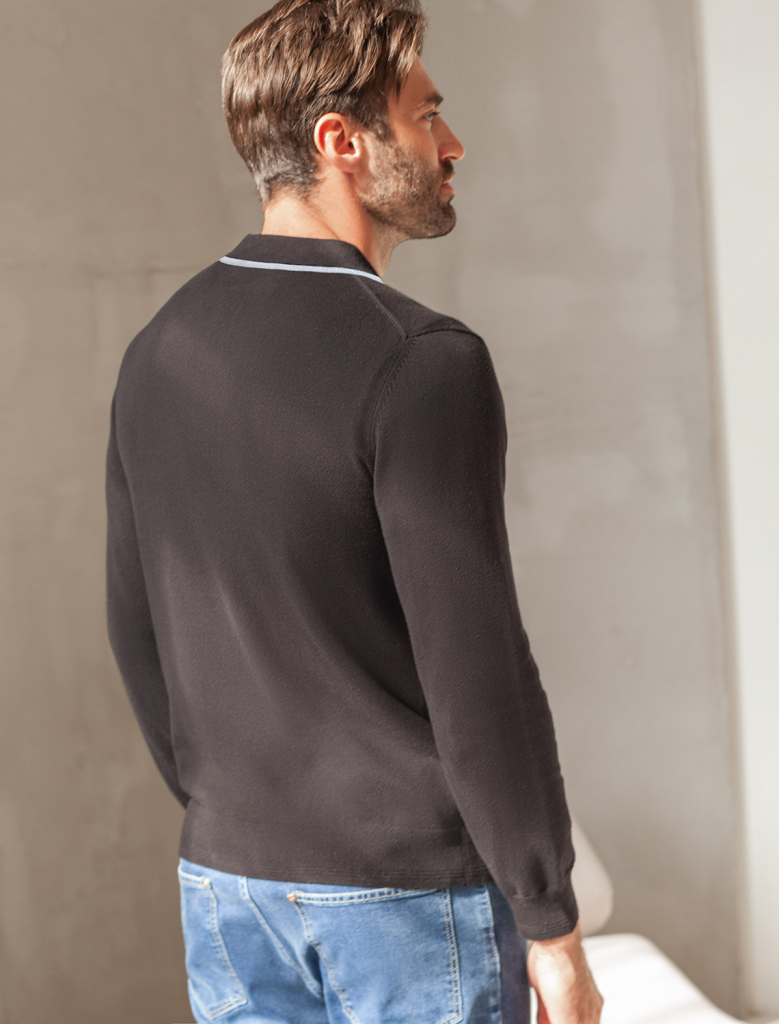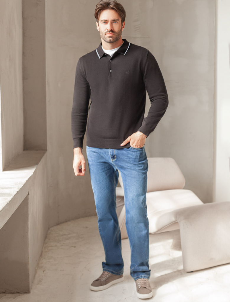 Джемпер-поло выполнен из хлопковой пряжи с добавлением нейлона. Модель гладкой вязки дополнена вышитым логотипом бренда и классическим металлическим лого. Фурнитура темный никель. Изделие гармонично впишется в образ как с брюками, так и с джинсами. Хлопковая пряжа хорошо сохраняет тепло при этом, не перегревая тело. Нейлон в составе способствует формоустойчивости.