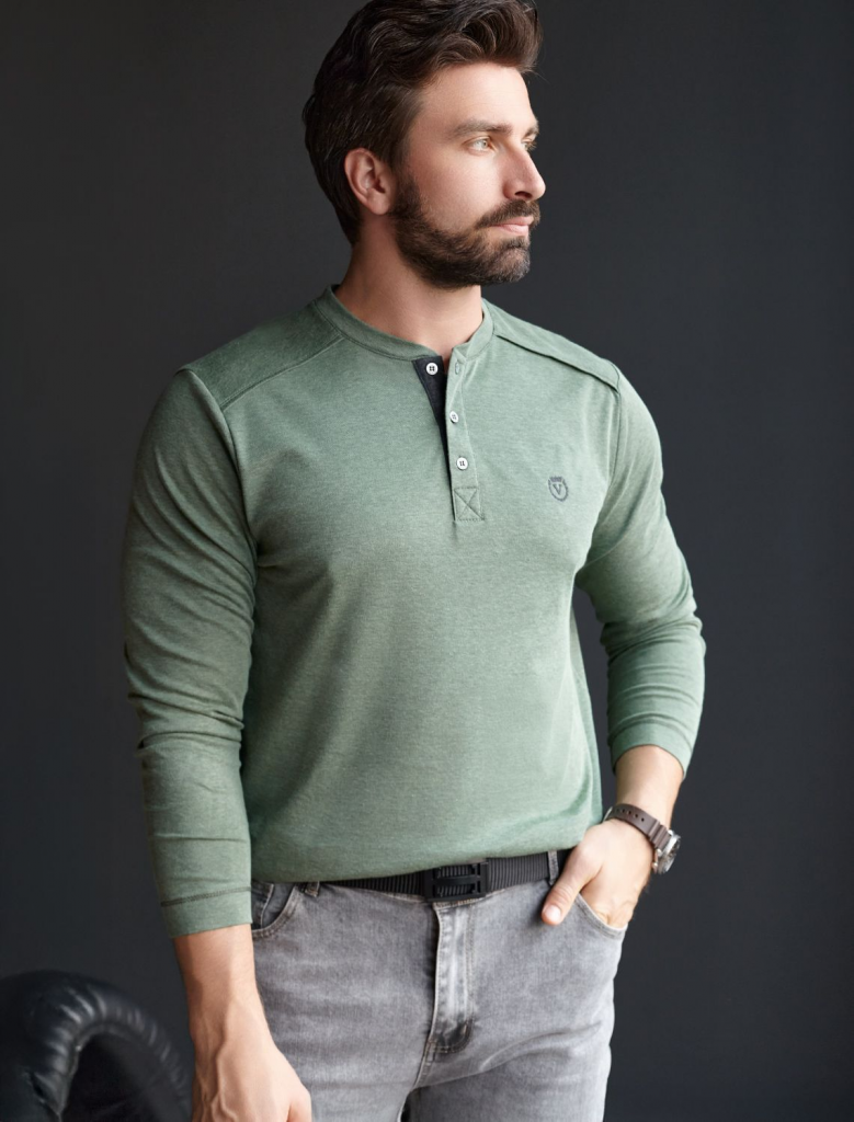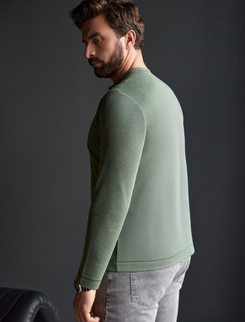 Джемпер хенли цвета хаки из полотна пике, состоящий из двух оттенков нити, создающем эффект меланж. Мягкая и дышащая ткань обеспечивает комфорт в течение всего дня, позволяя коже дышать и поддерживать оптимальную воздухопроницаемость. Материал тянется, обеспечивает долговечность и сохраняет презентабельный внешний вид даже после многократных стирок.Контрастная планка и пуговицы в благородном матовом металле поддерживают стиль old money, а аккуратная нашивка на груди в виде логотипа бренда подчеркивает статусность. По бокам аккуратные разрезы для свободы движений и дополнительного удобства.Джемпер подходит для любых ситуаций — от деловых встреч до повседневных прогулок. Такая вещь станет универсальным решением для тех, кто ценит удобство и элегантность в одежде. Лаконичный дизайн легко сочетается с джинсами или брюками, что позволяет создавать разные образы.